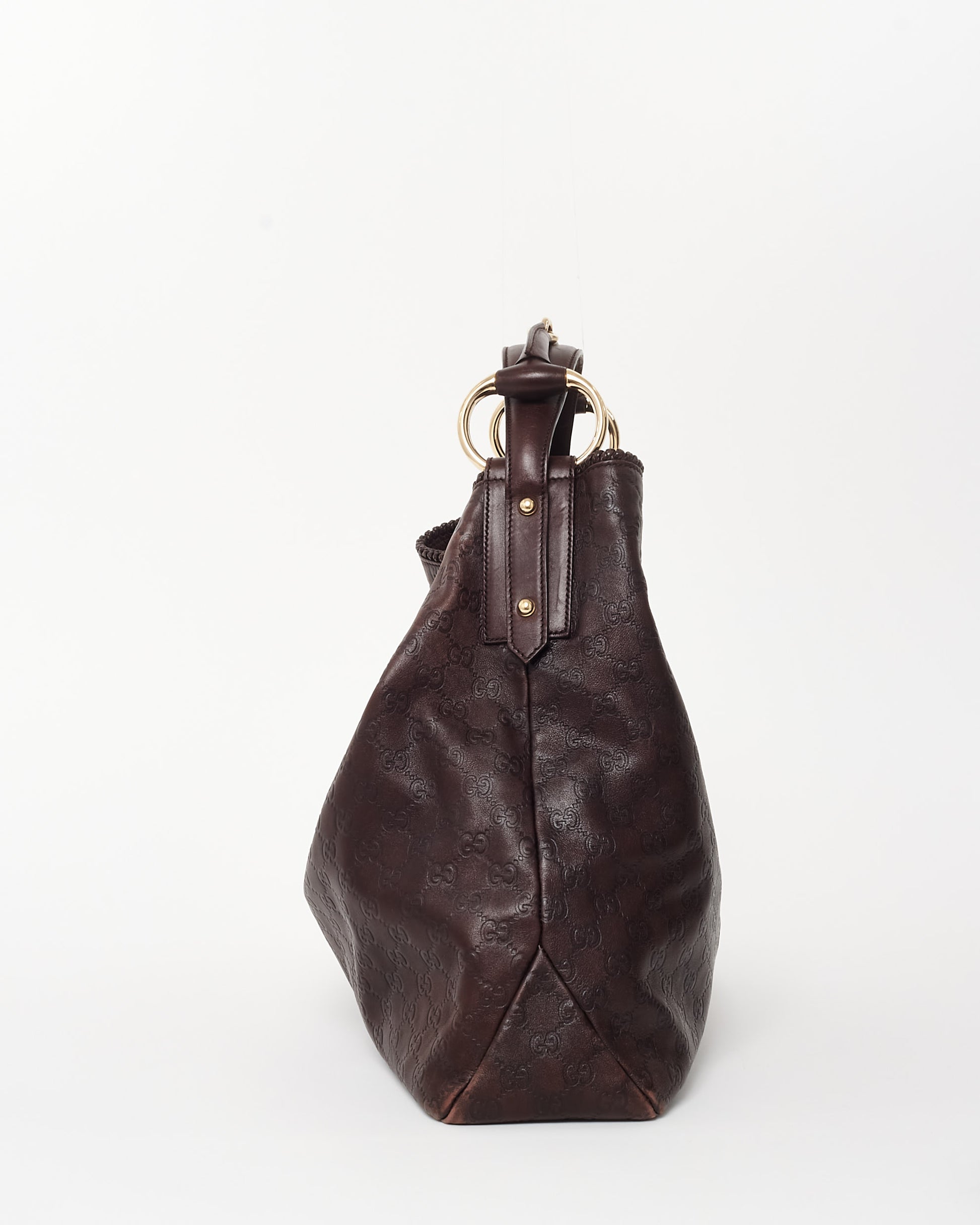 Brown Leather Guccissima Horsebit Shoulder Bag