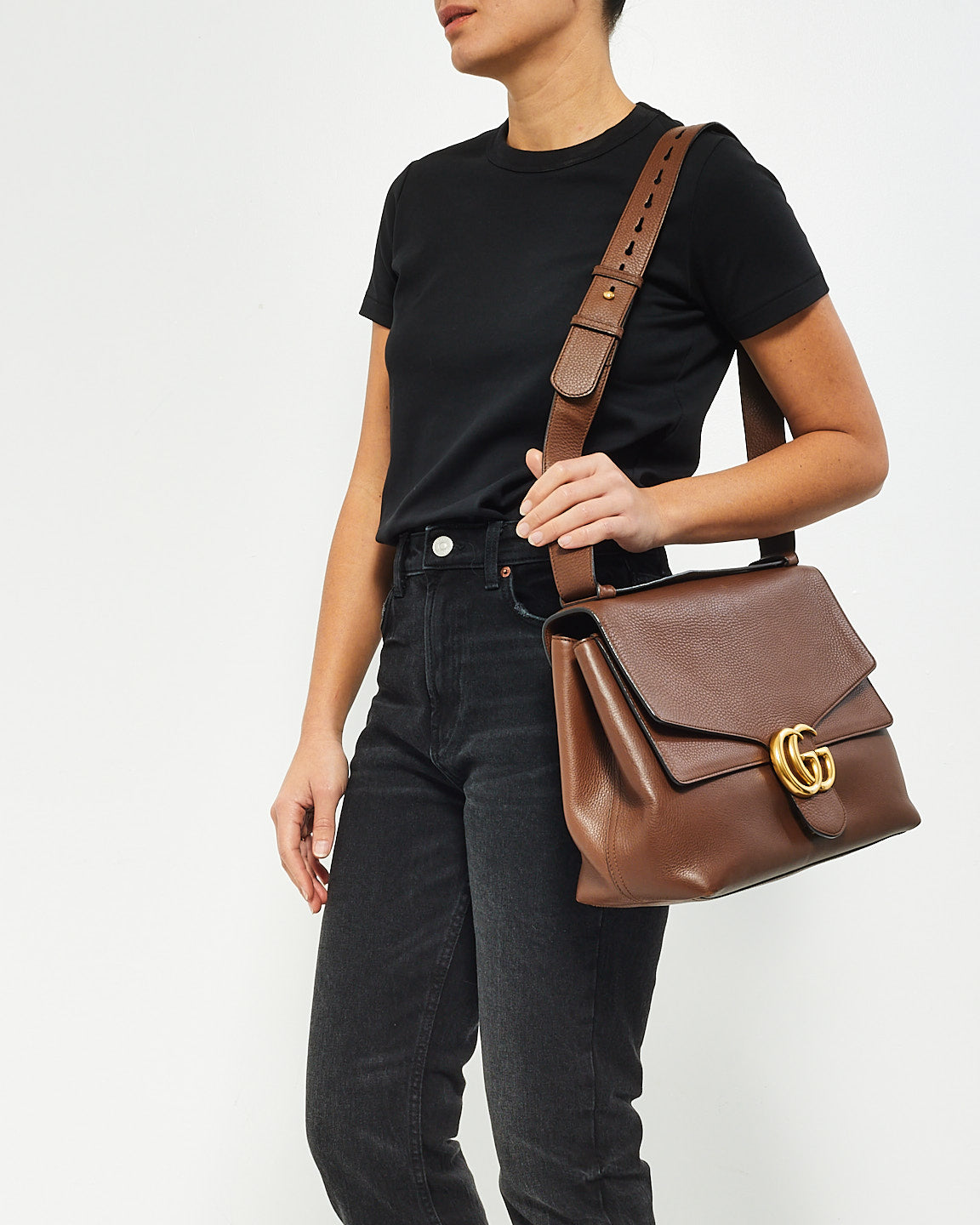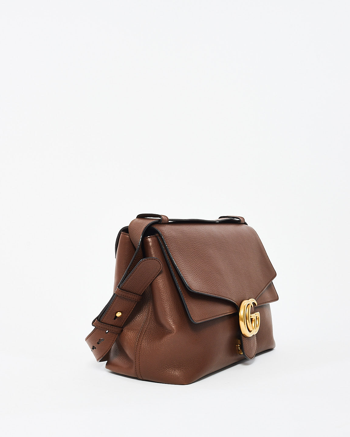 Brown Leather GG Marmont Messenger Shoulder Bag