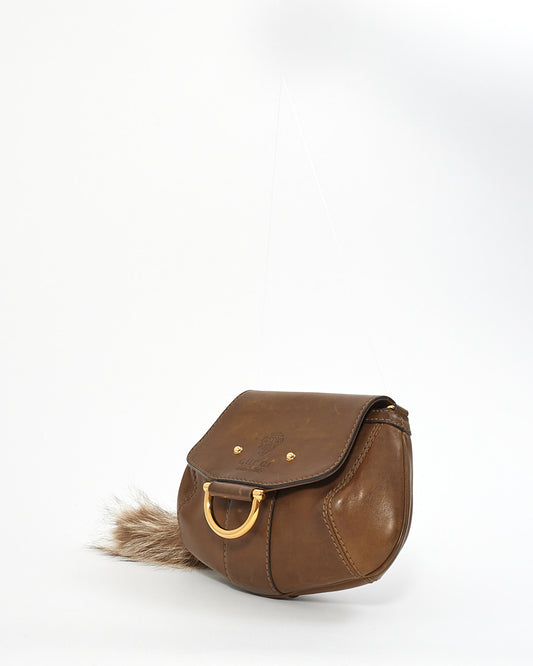 Brown Leather Racoon Fur Small Smilla Chain Shoulder Bag