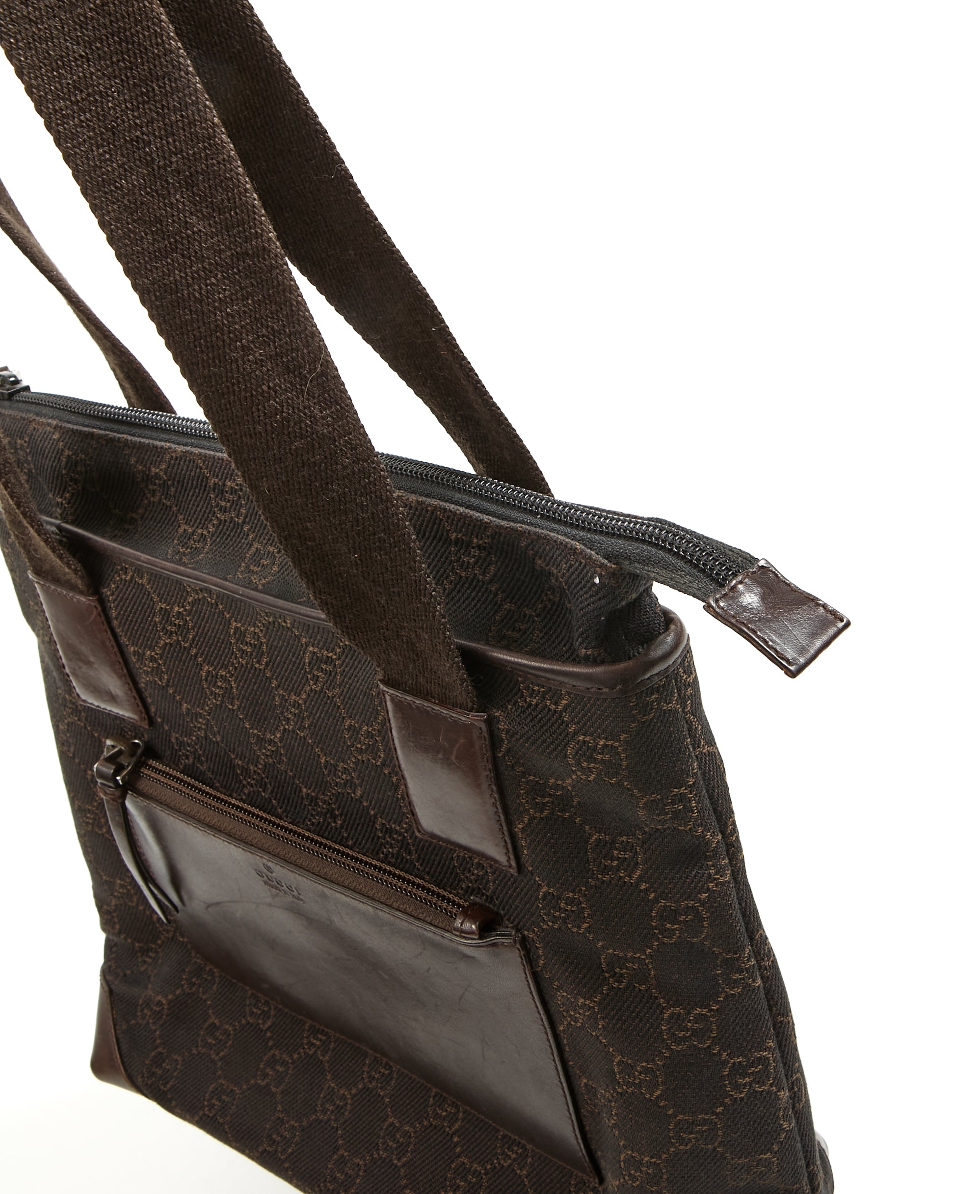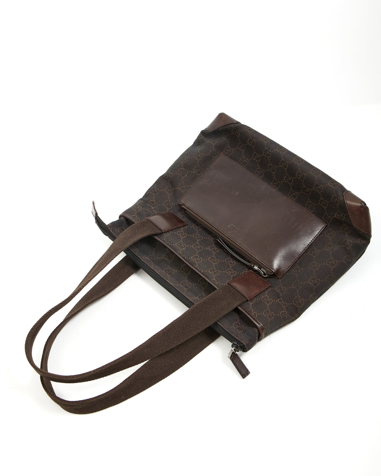 Brown Monogram GG Canvas Leather Pocket Shoulder Bag Tote