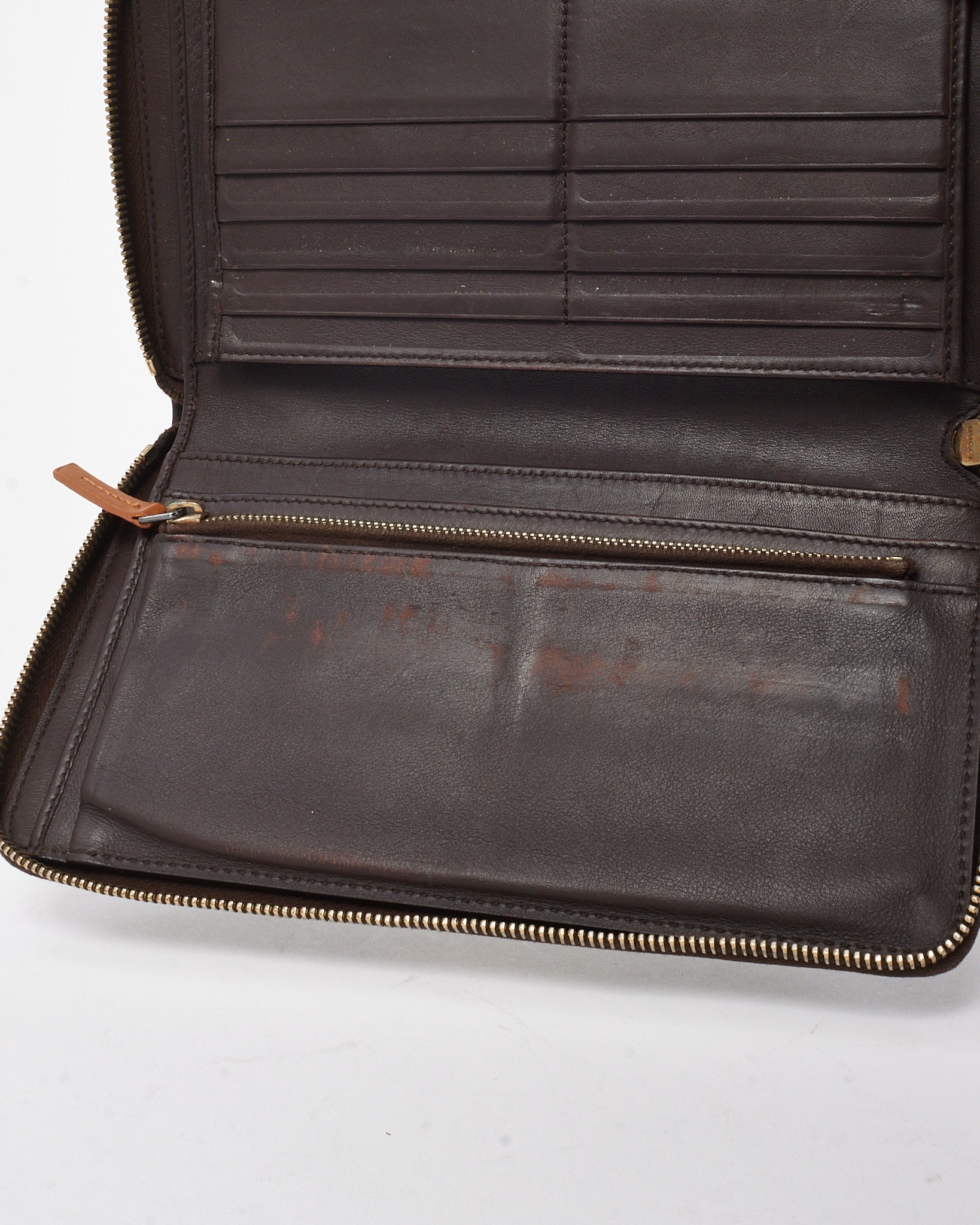 Add timeless luxury to your accessories collection with this pre-loved authentic Gucci zippy wallet. Crafted in brown signature GG-embossed leather, the design features an all-around zip closure that opens to a well-organized interior with multiple card slots, compartments, and a zippered coin pocket. The refined texture and tonal branding make it an elegant yet practical piece, perfect for daily use or travel. A classic expression of Gucci’s heritage, this wallet balances iconic style with everyday functionality.