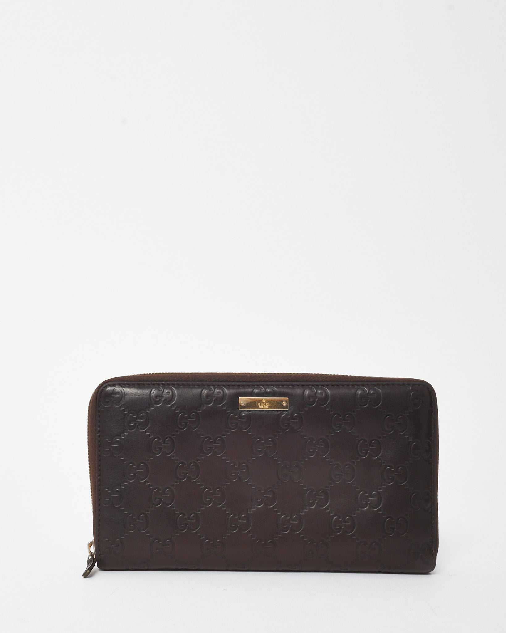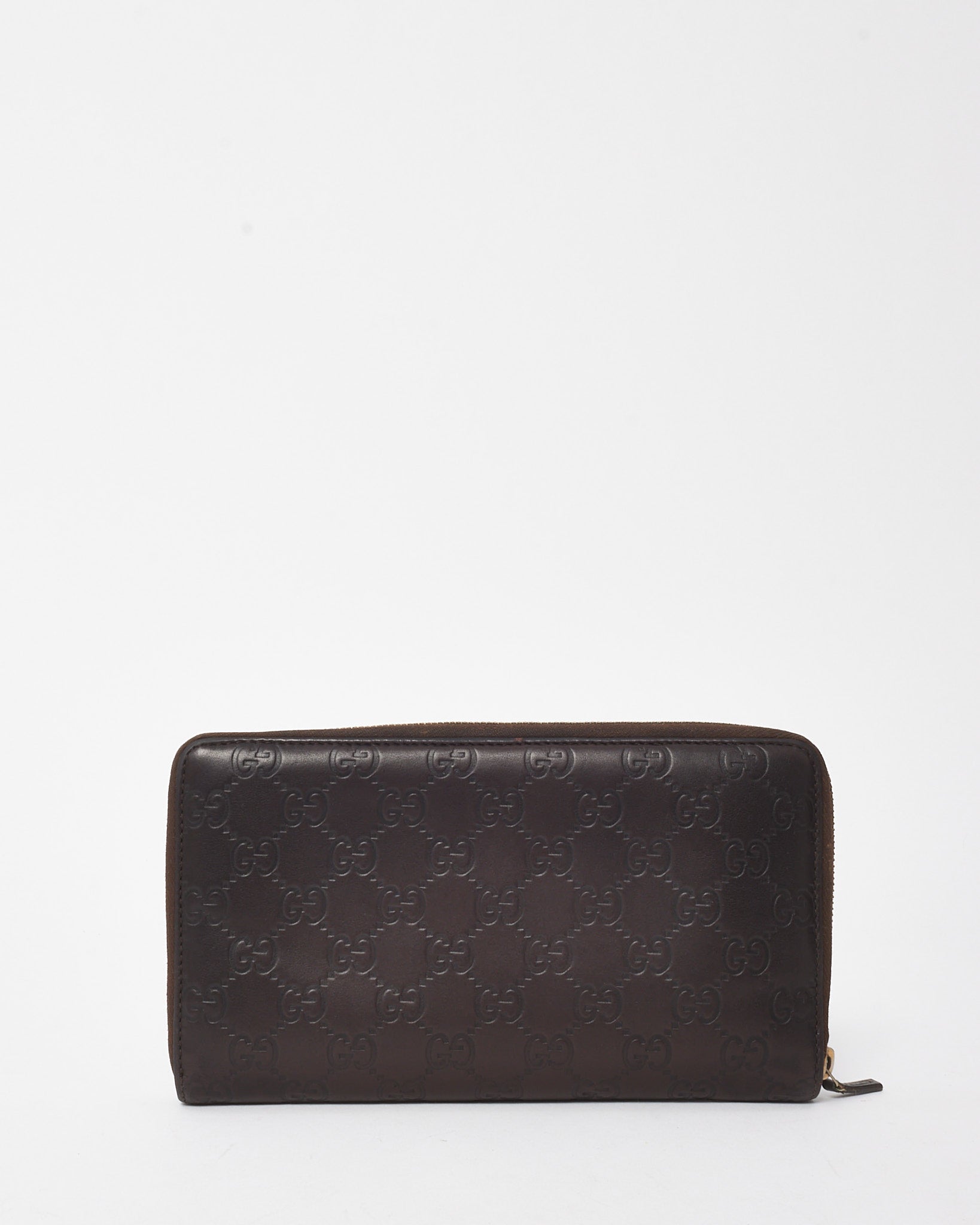 Brown Signature GG Embossed Leather Zippy Wallet