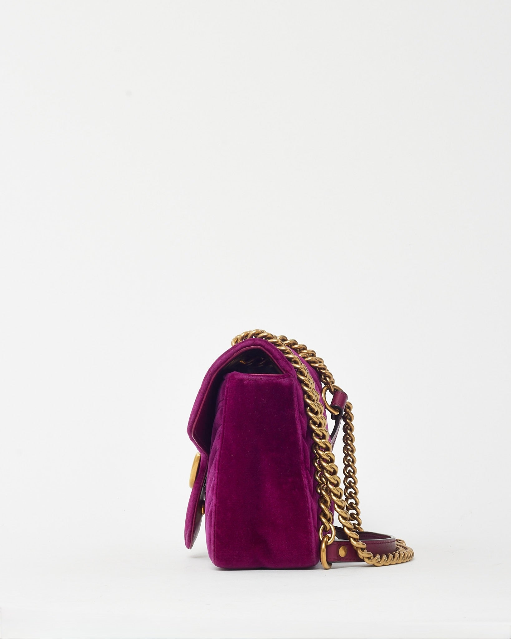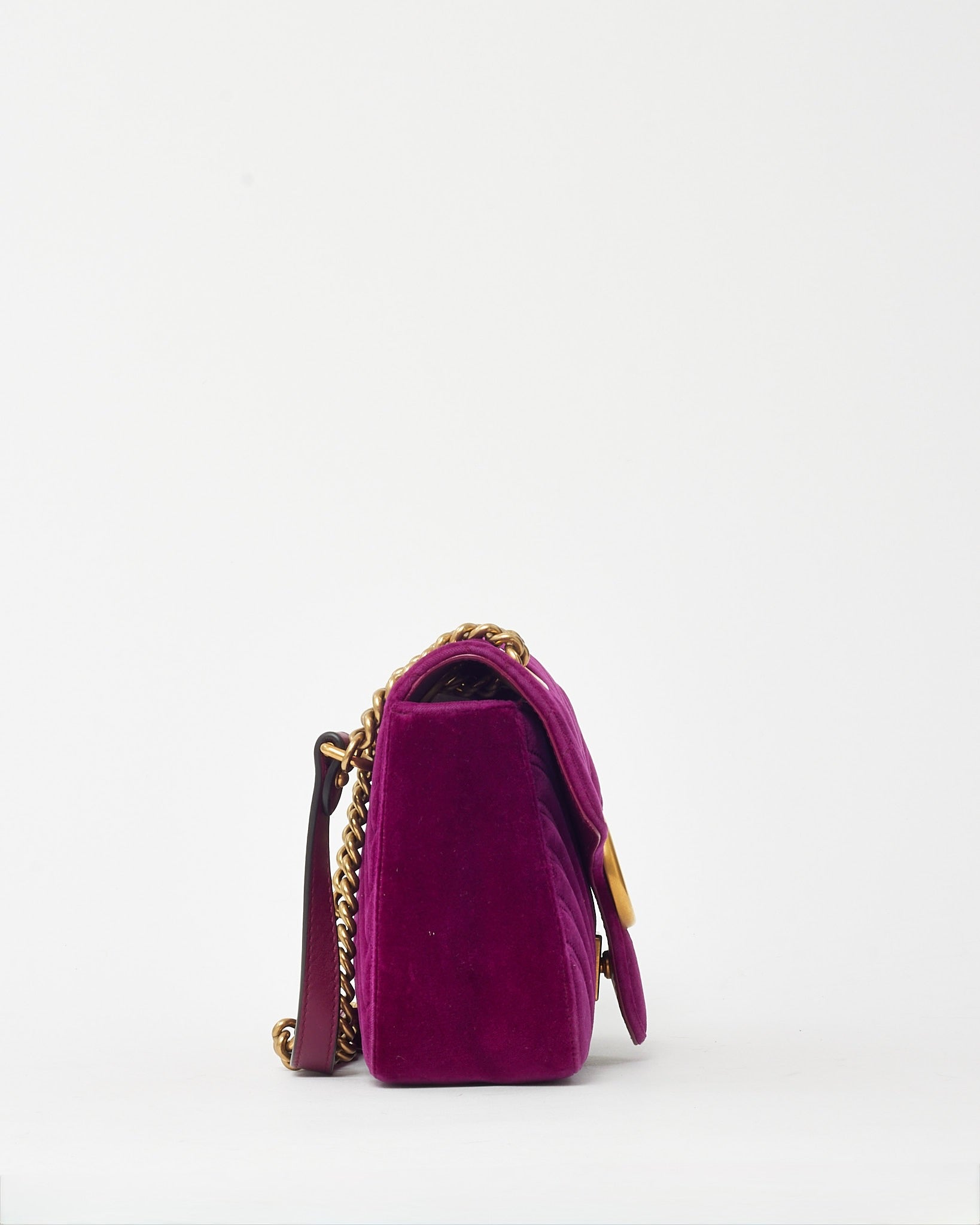 Fuchsia Matelassé Velvet Small GG Marmont Shoulder Bag