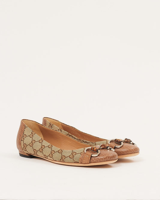 GG Beige Bamboo Detail Ballerina Flats - 36.5