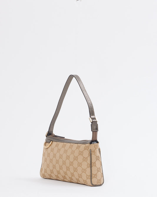 GG Beige Canvas Print D Ring Small Shoulder Bag