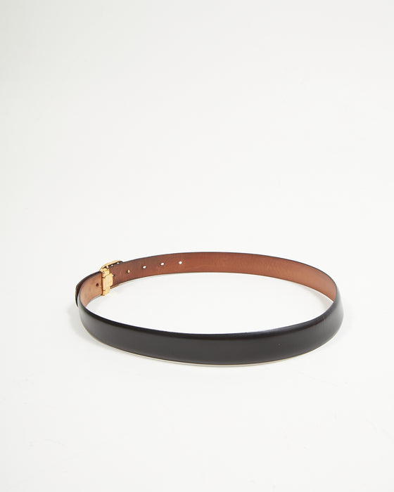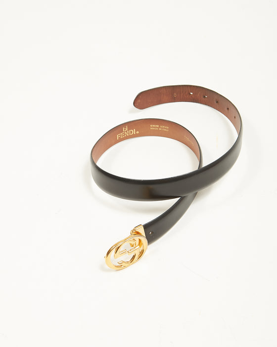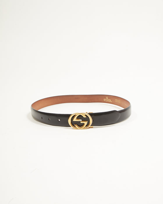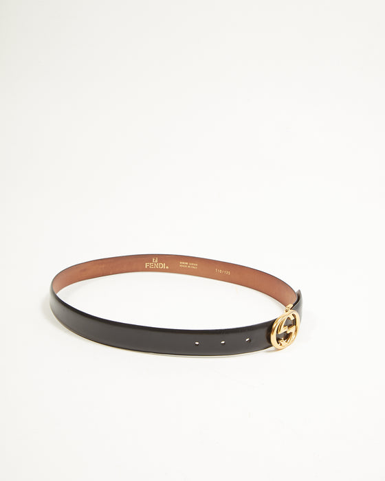 GG Gold Buckle on Fendi Black Leather Belt - 110