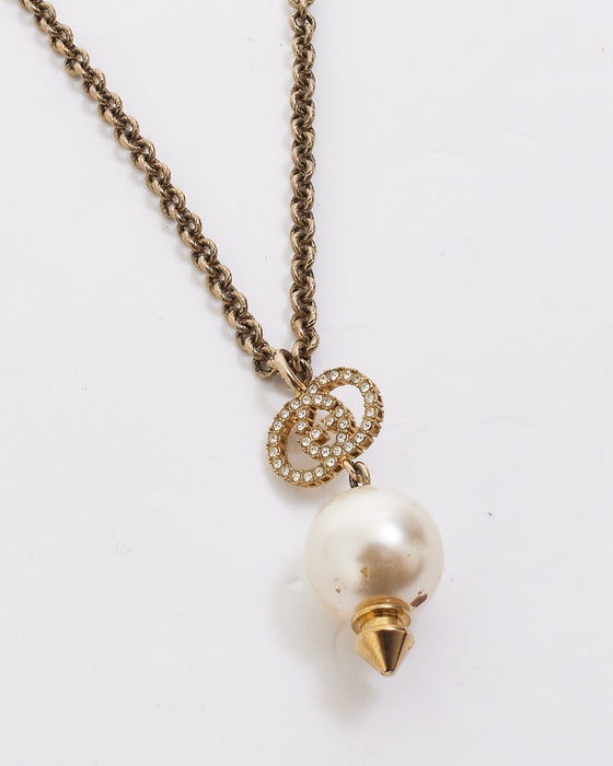 Gold Finish Metal Interlocking Crystal GG Pearl Necklace
