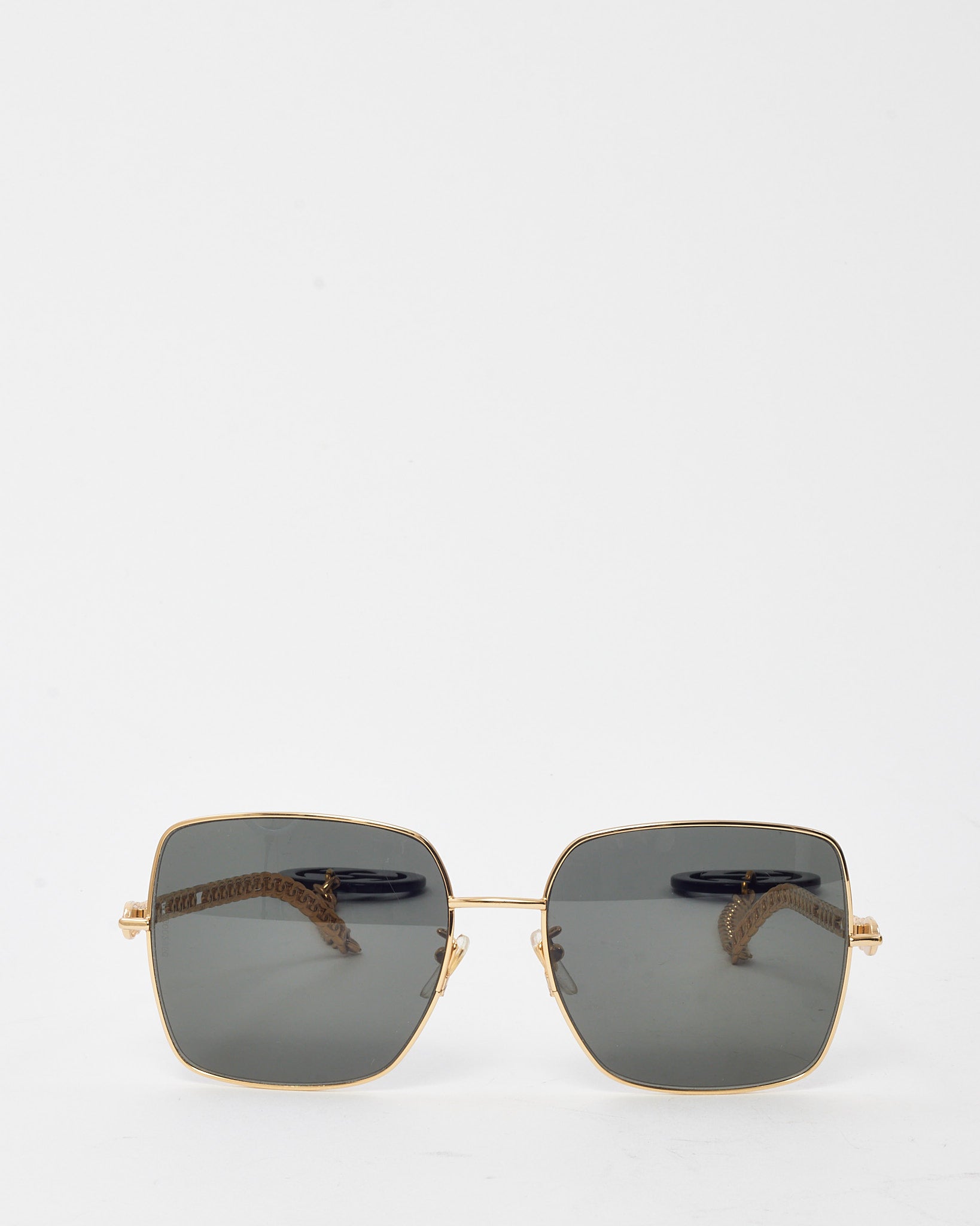 Gold Metal Oversize Square GG0724S Sunglasses with Chain GG Logo Charms