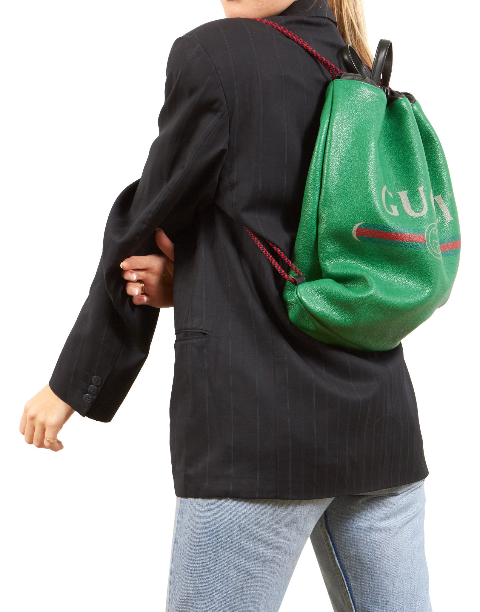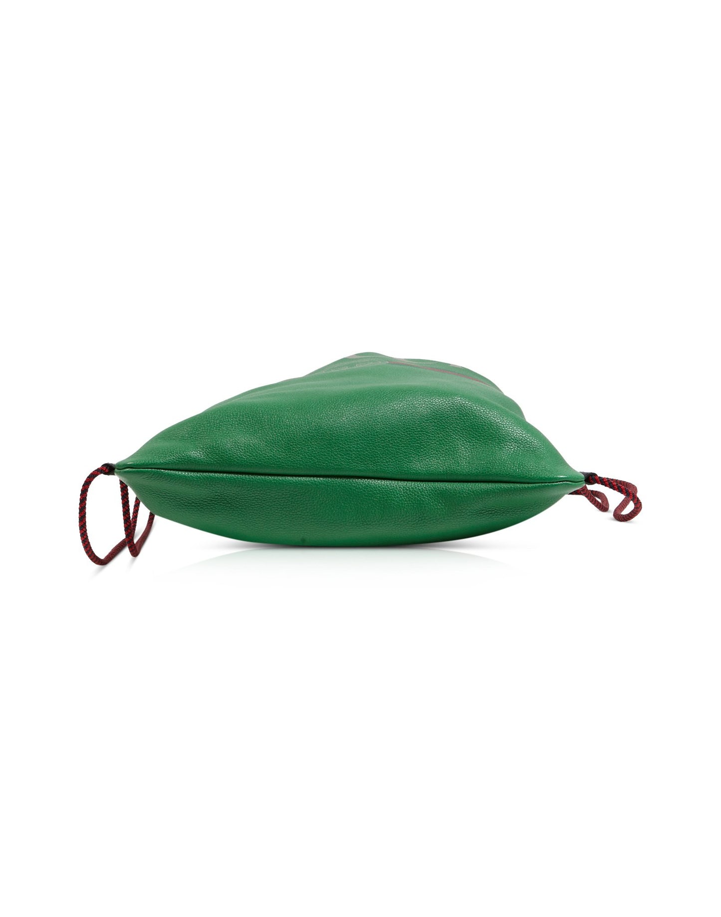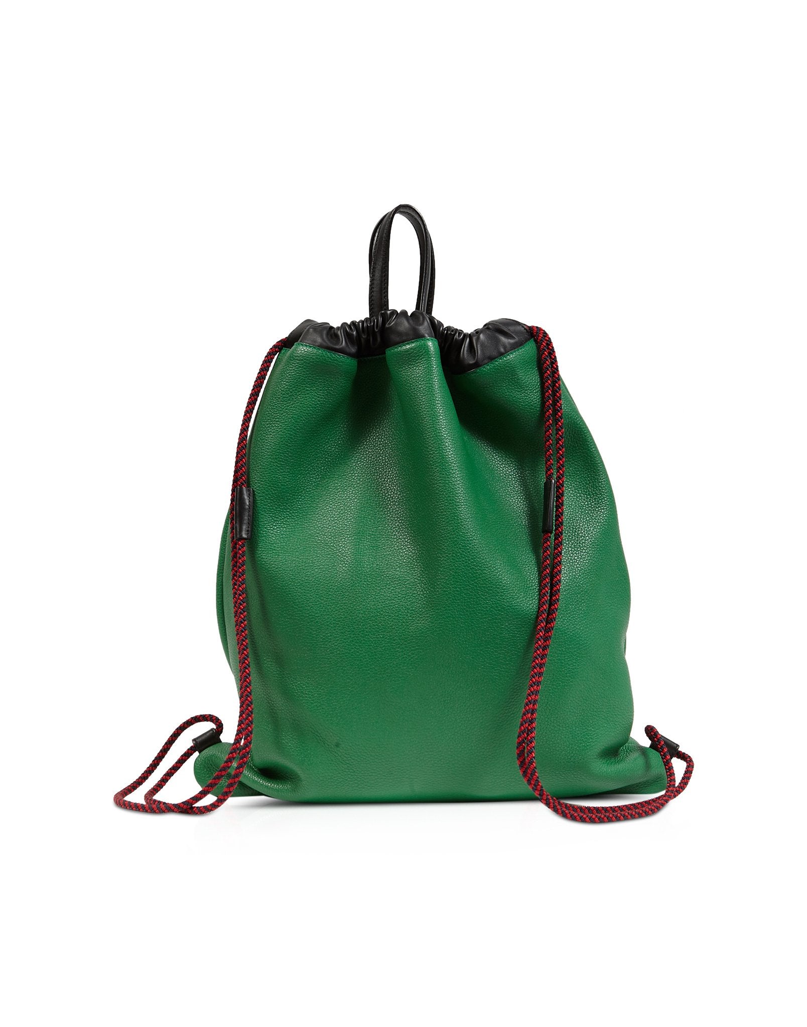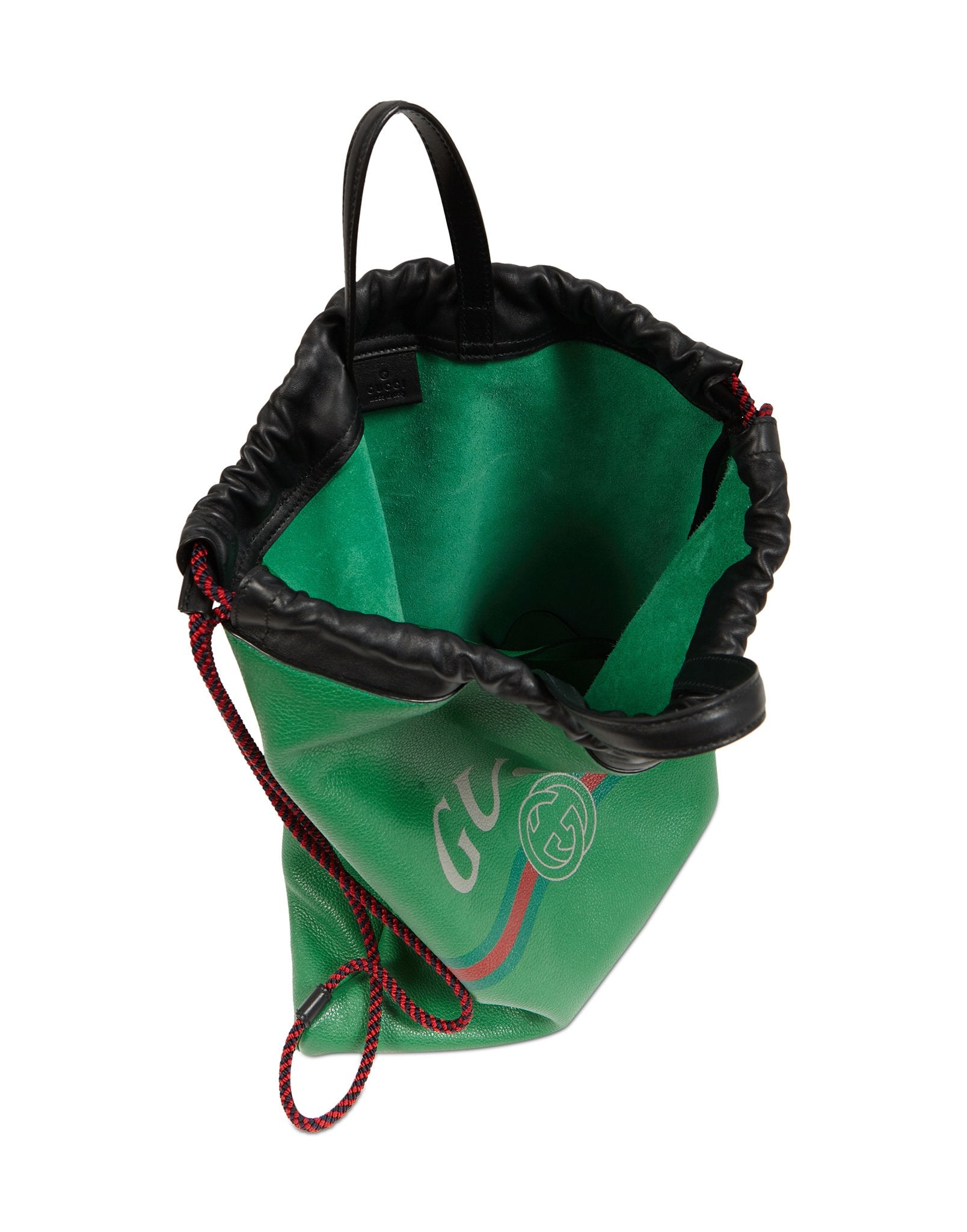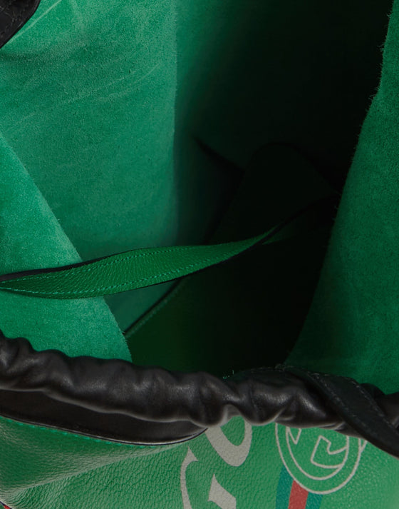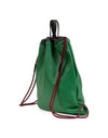 Green Leather Logo Drawstring Backpack