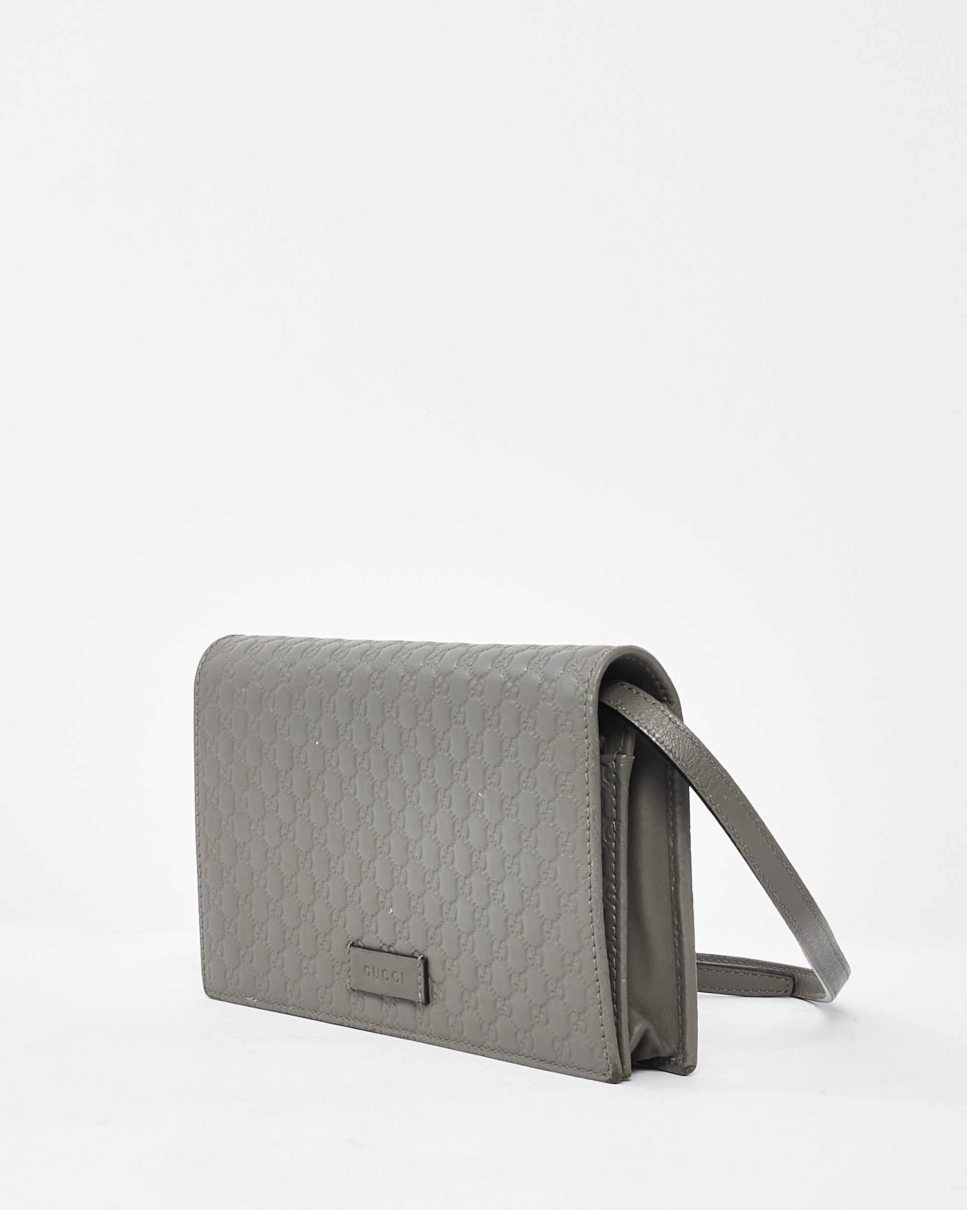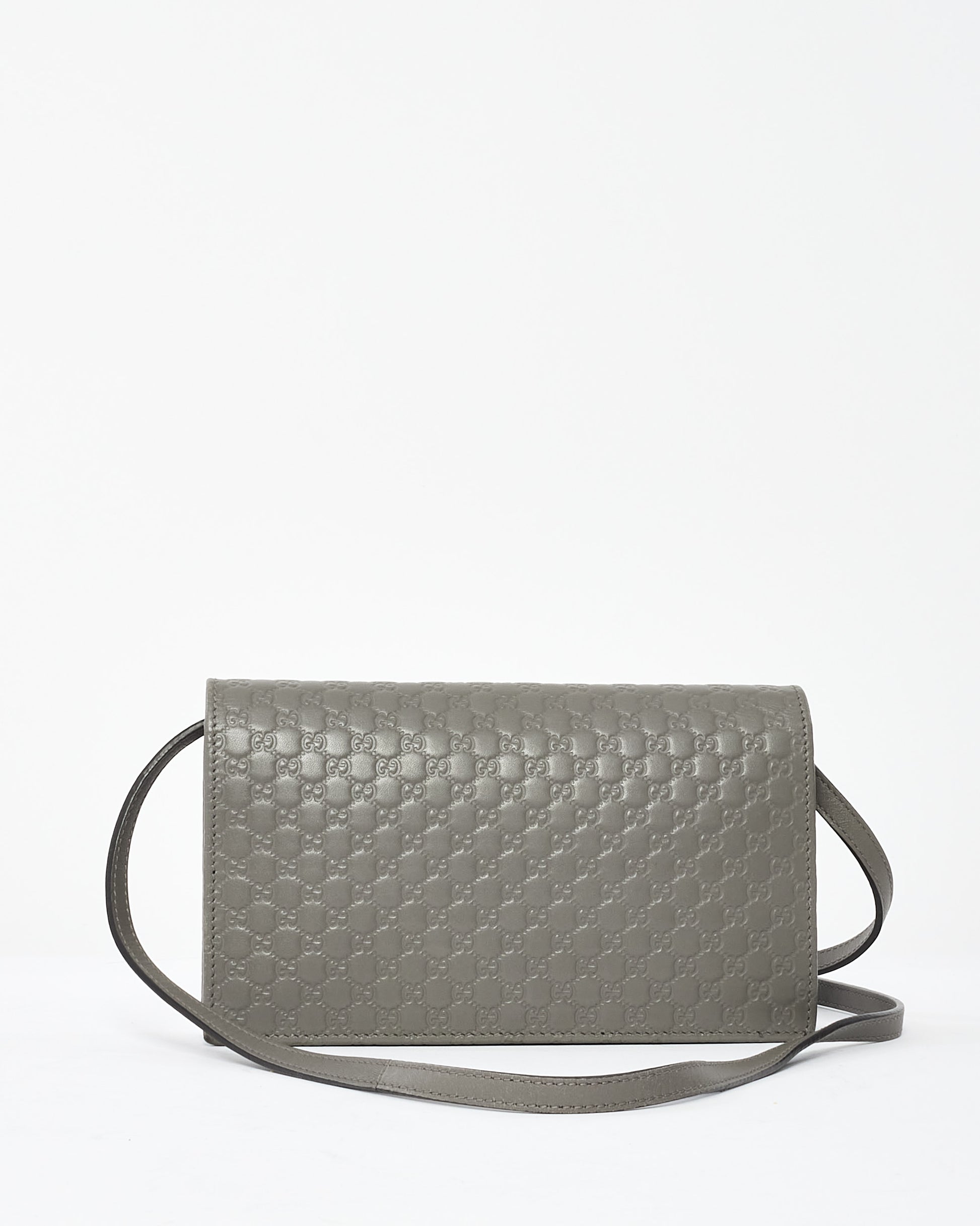 Grey Leather Guccissima Wallet On Strap