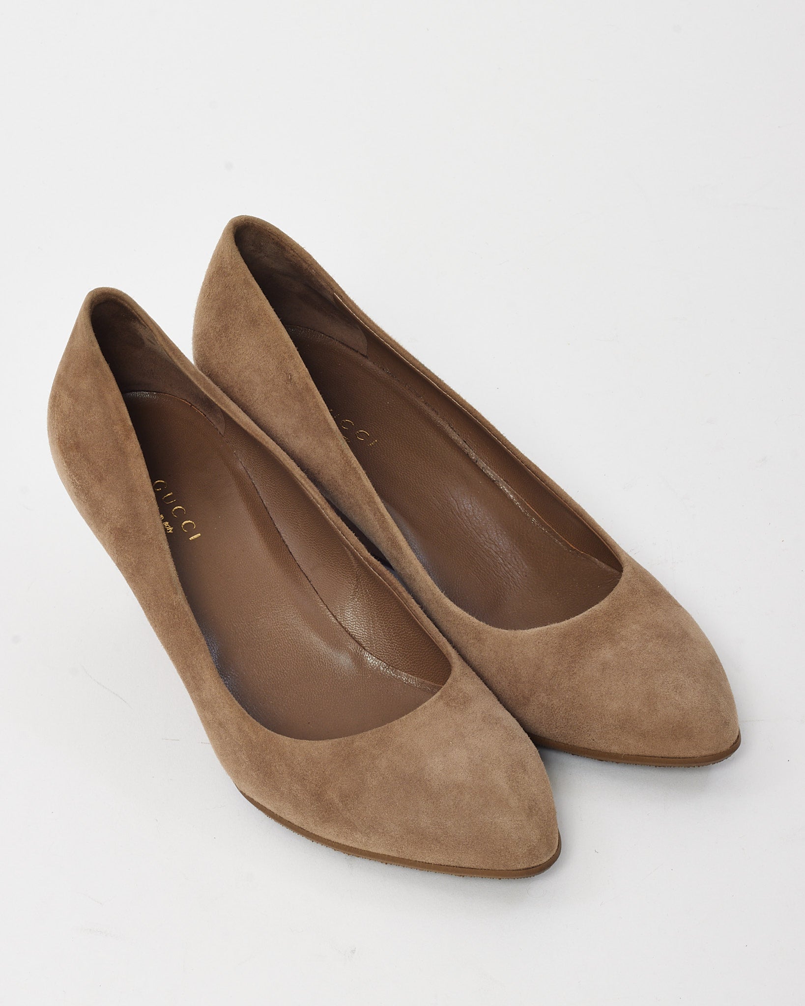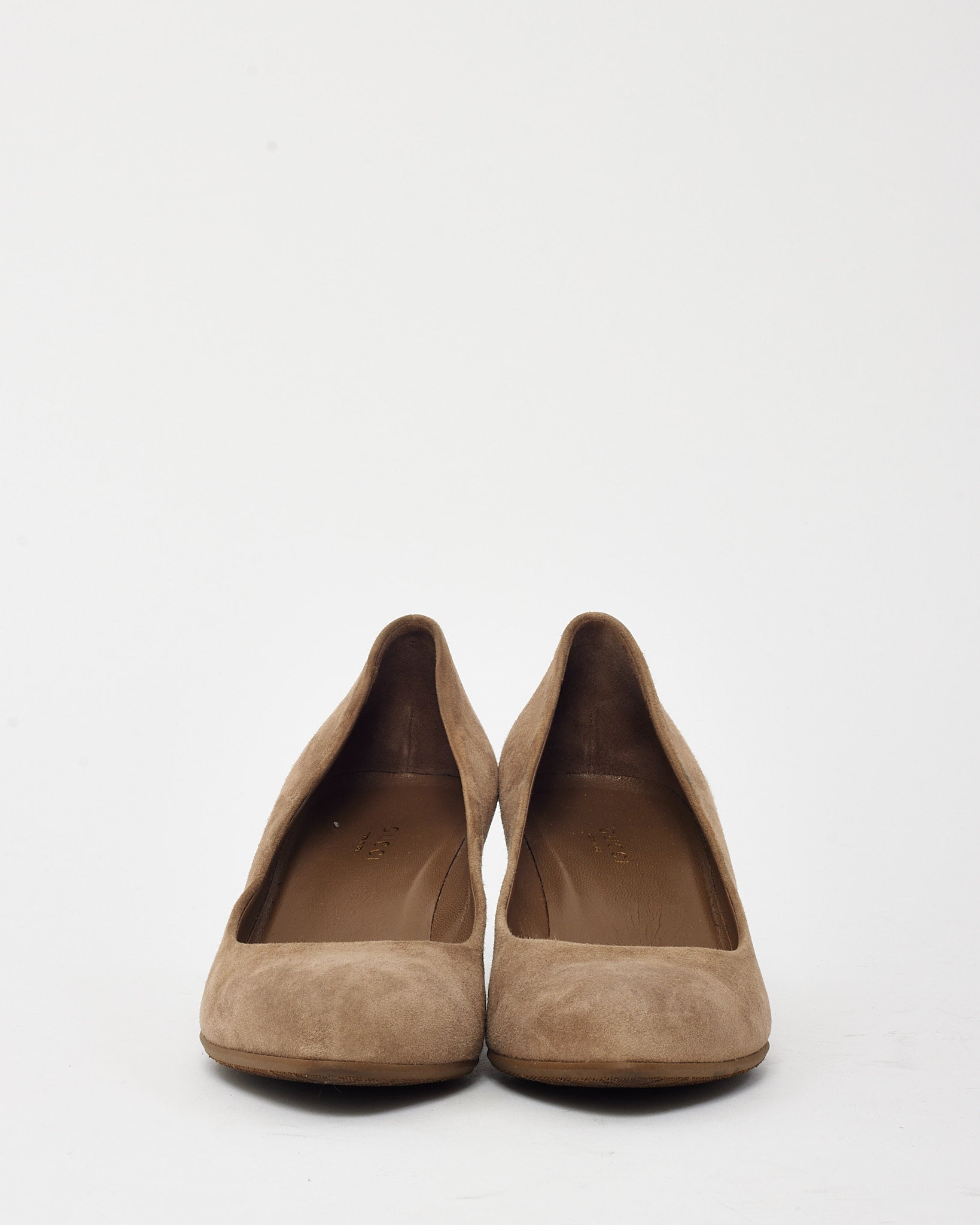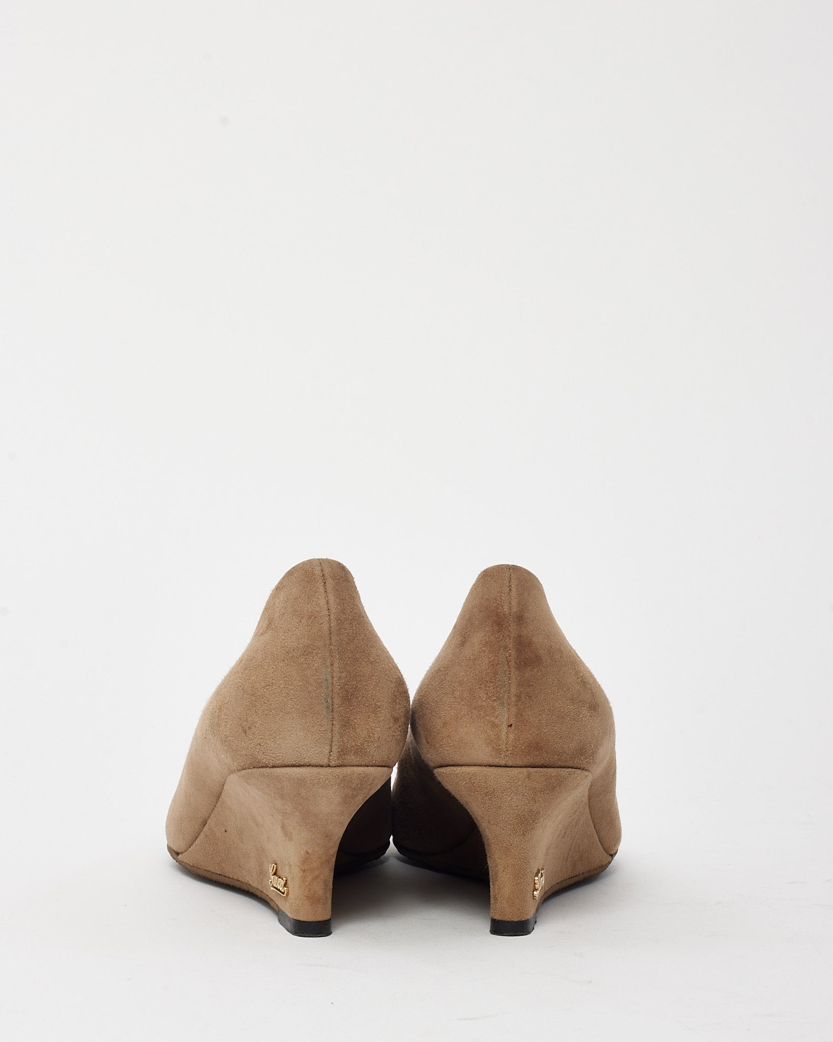 Light Brown Suede Leather Logo Wedge Pumps - 38