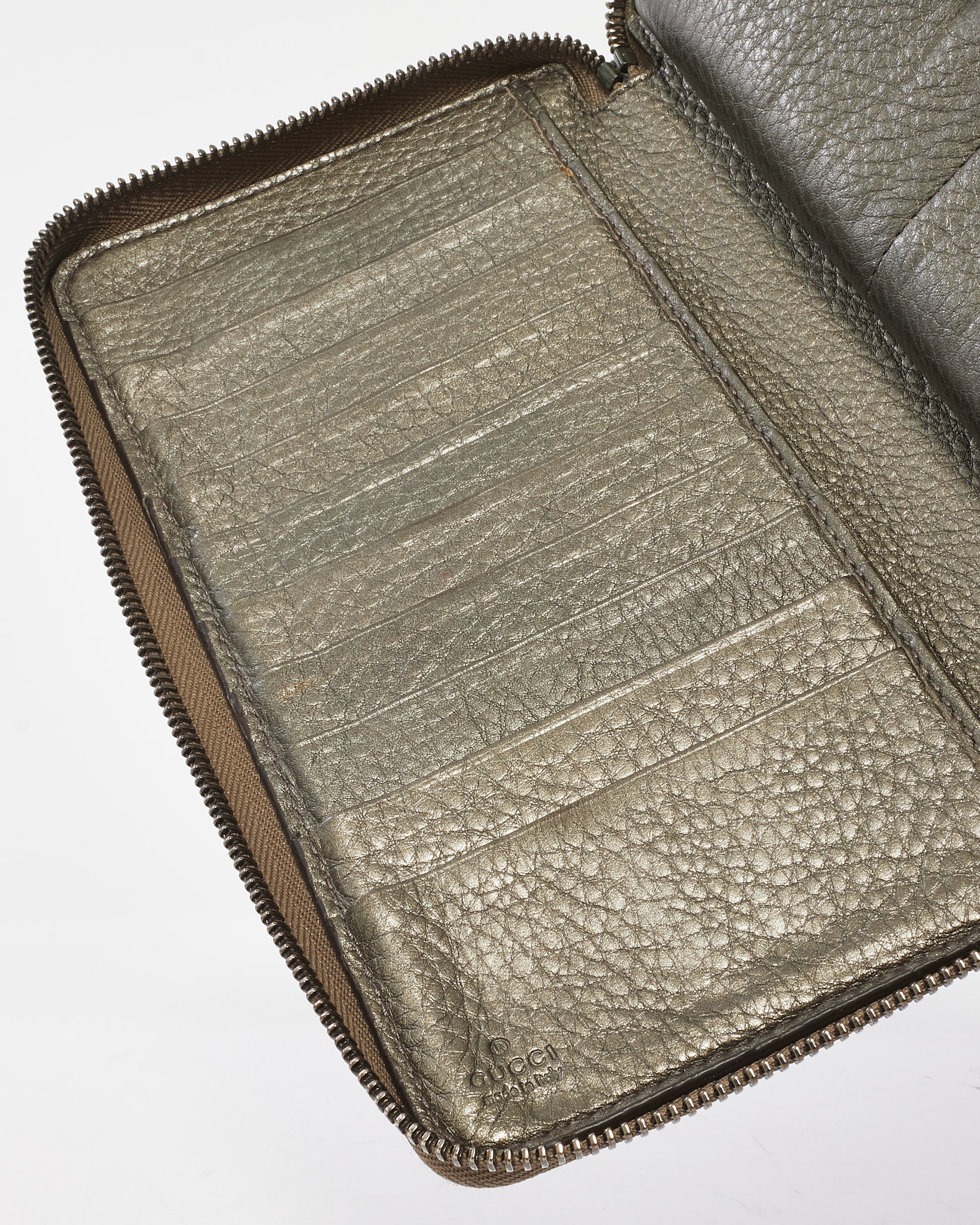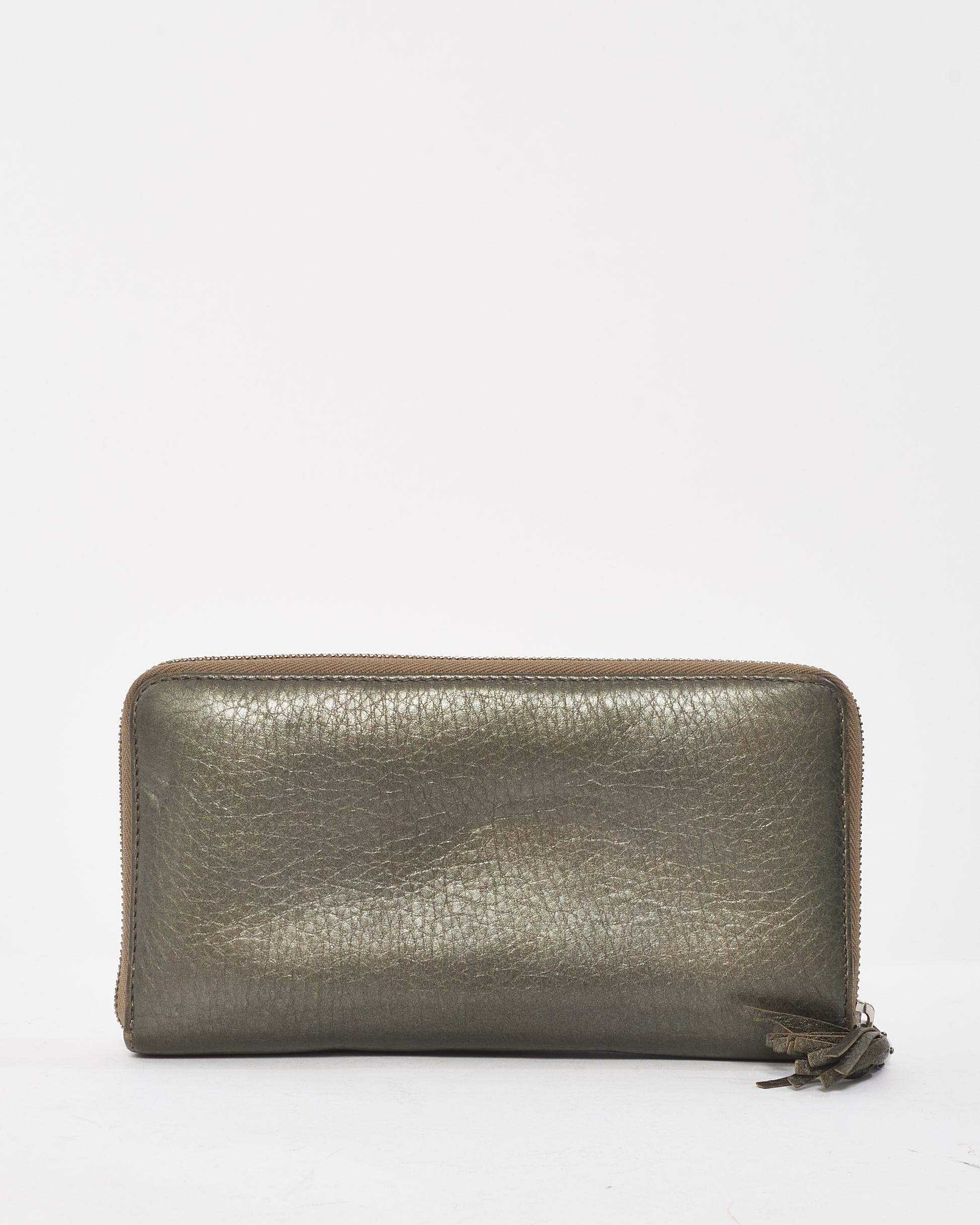 Metallic Pewter Leather Embossed Soho Logo Long Zip Wallet