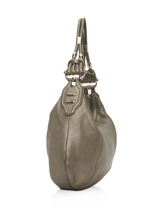 Metallic Silver Leather Techno Horsebit Hobo Shoulder Bag