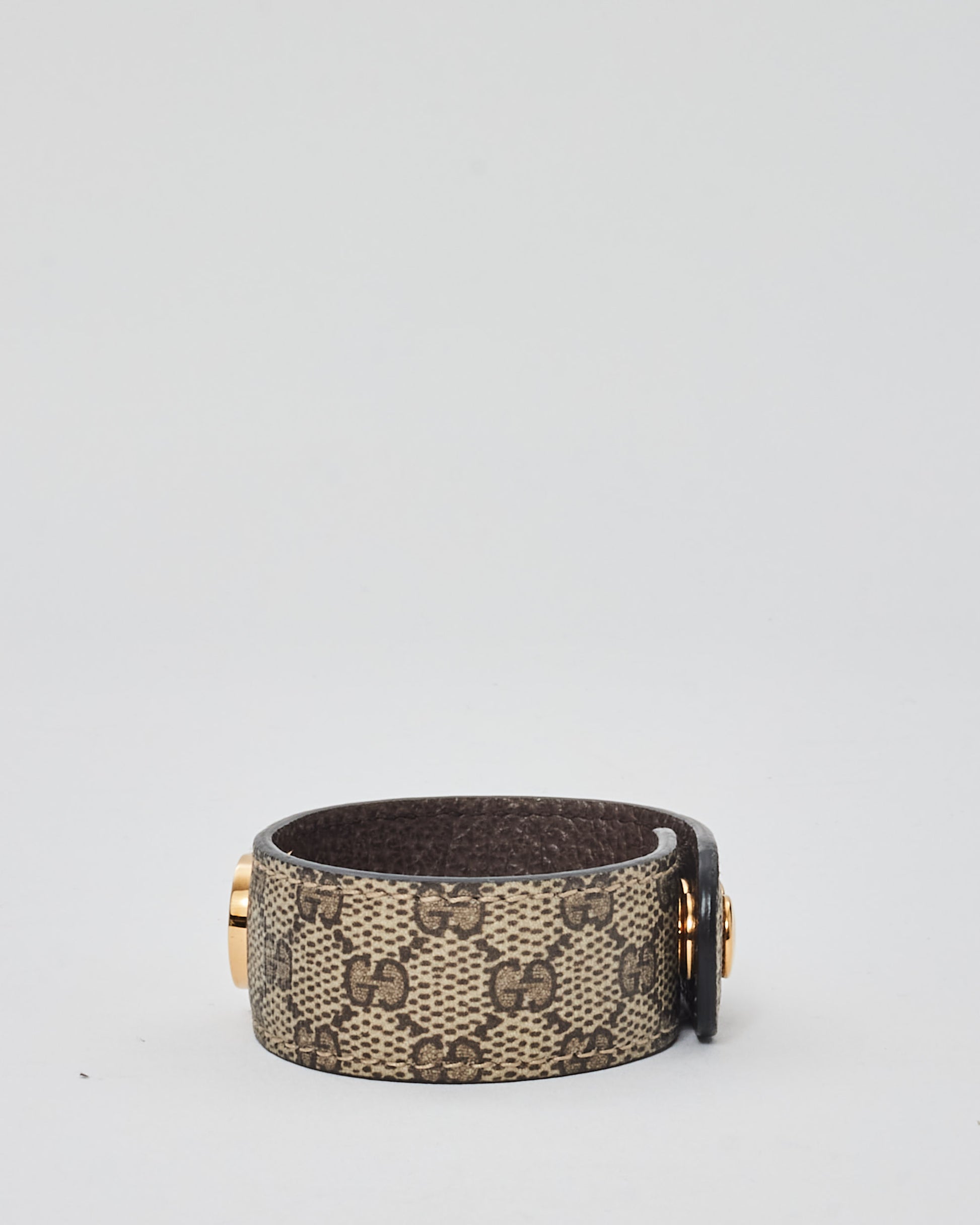 Explore Gucci's exquisite collection of jewelry, featuring this certified pre-owned Monogram Canvas Logo Cuff - S. Embodying timeless elegance and modern sustainability, each piece, including favorites like this, is authenticated by Retyche. Discover sustainable luxury — shop our current treasures or find inspiration for your next coveted find.