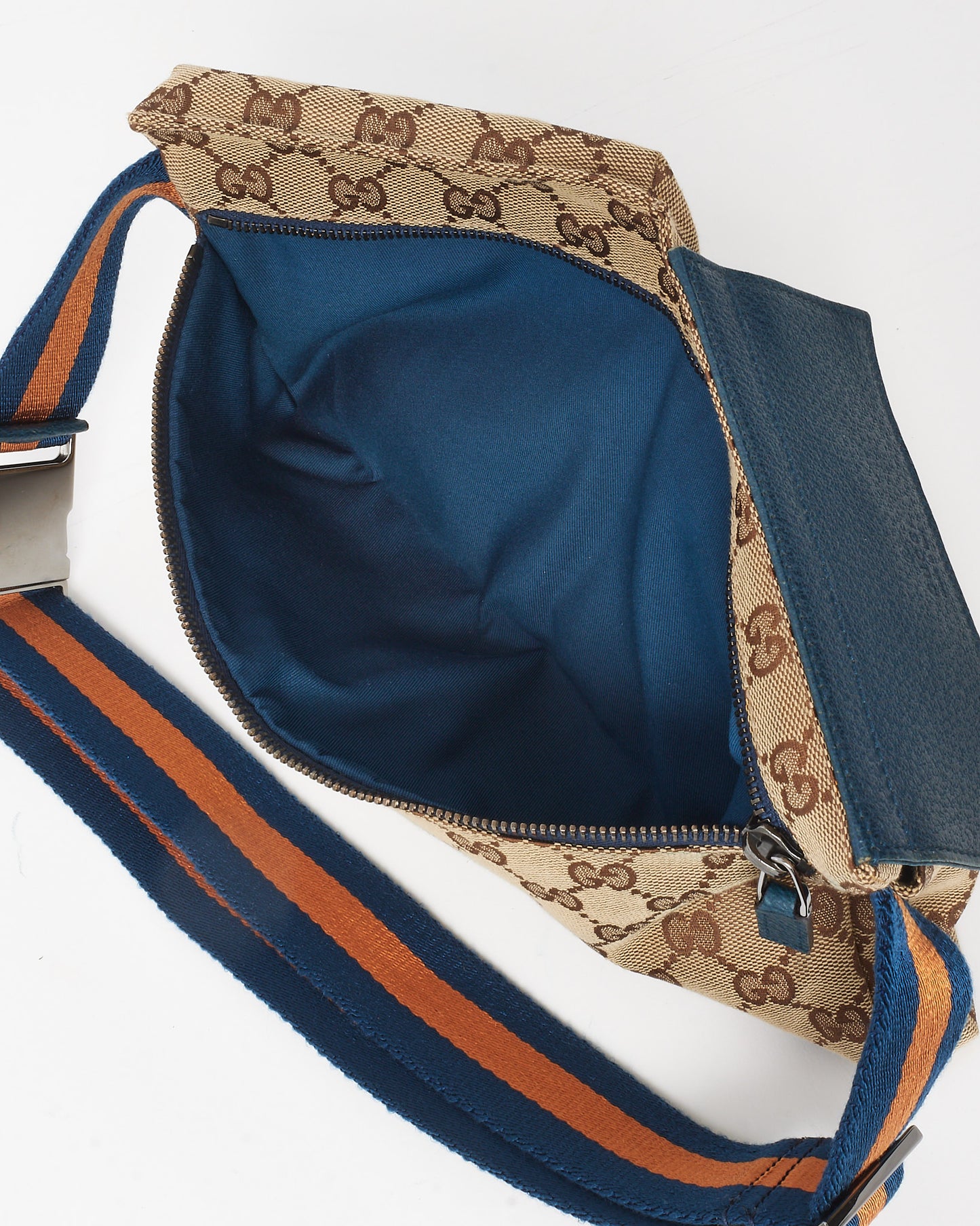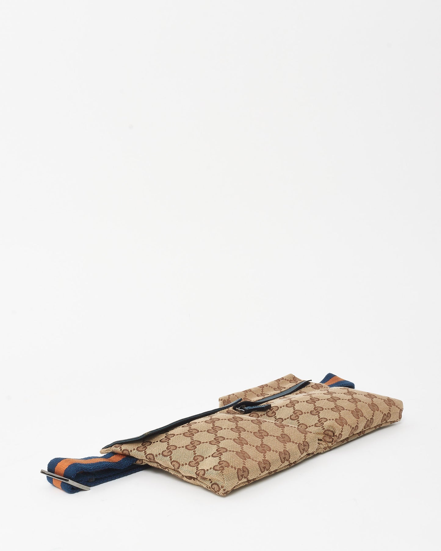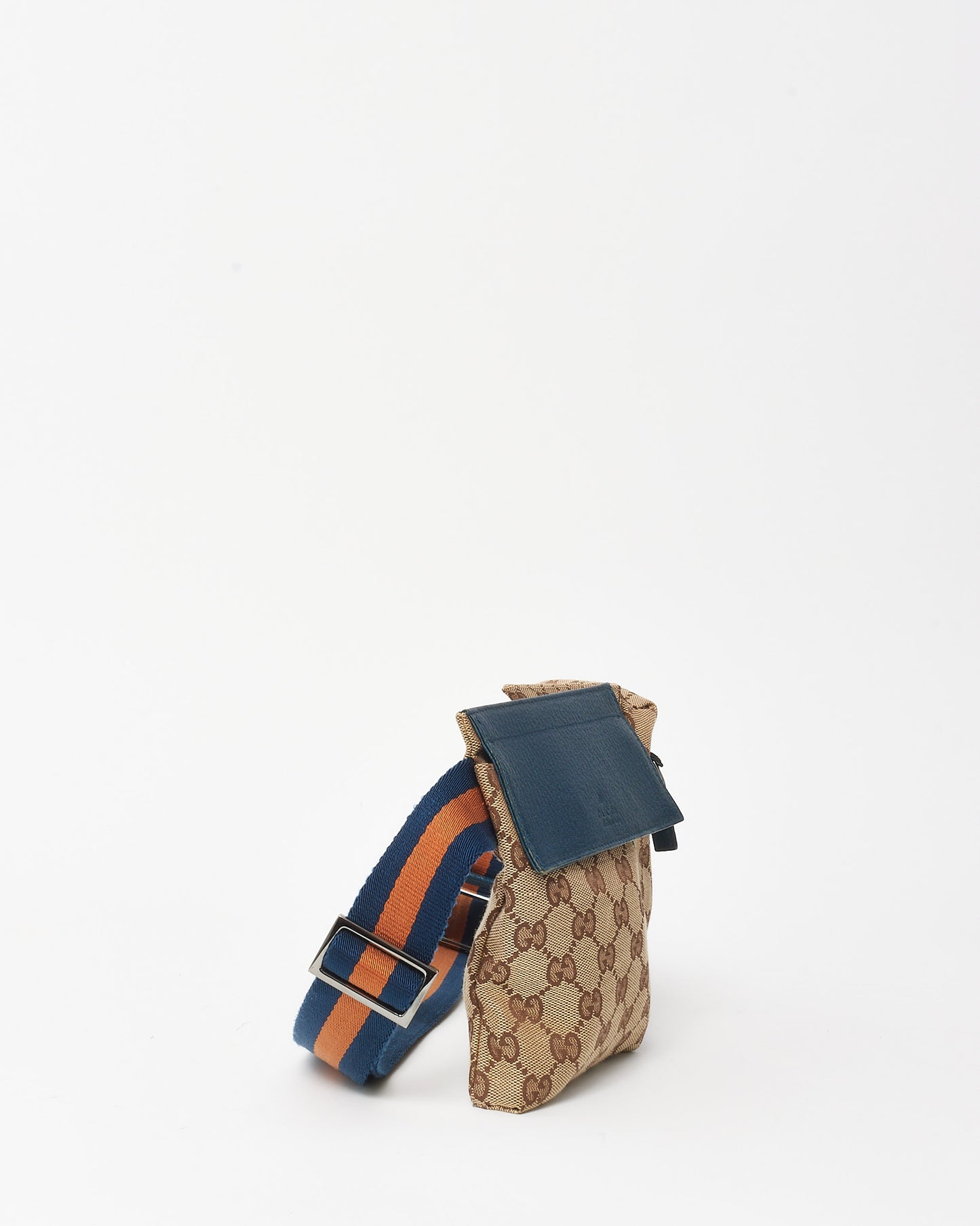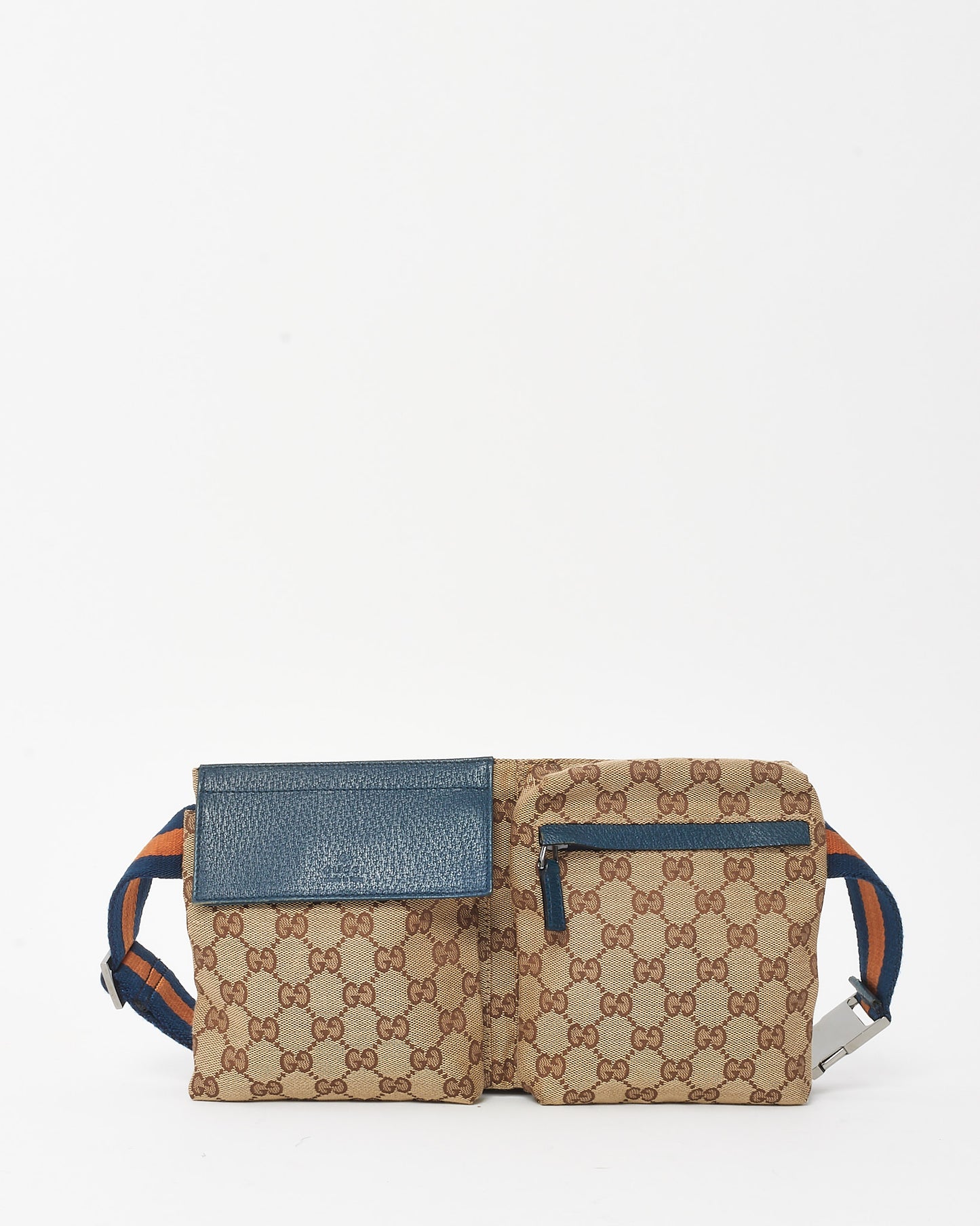 Navy Leather Beige & Brown Monogram GG Canvas Double Pocket Belt Bag