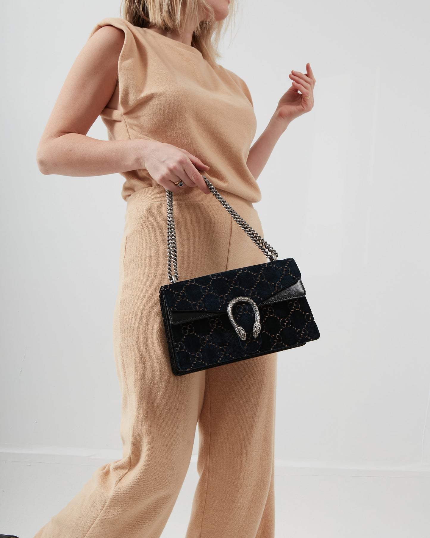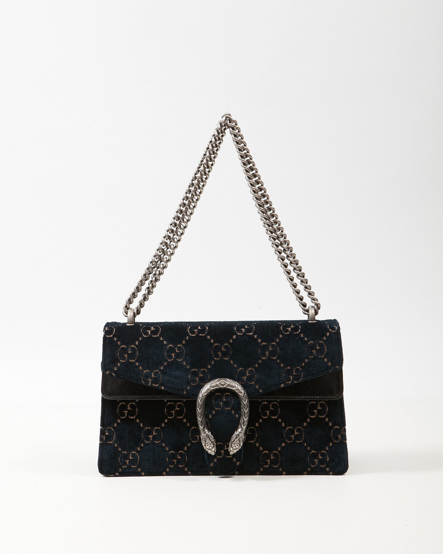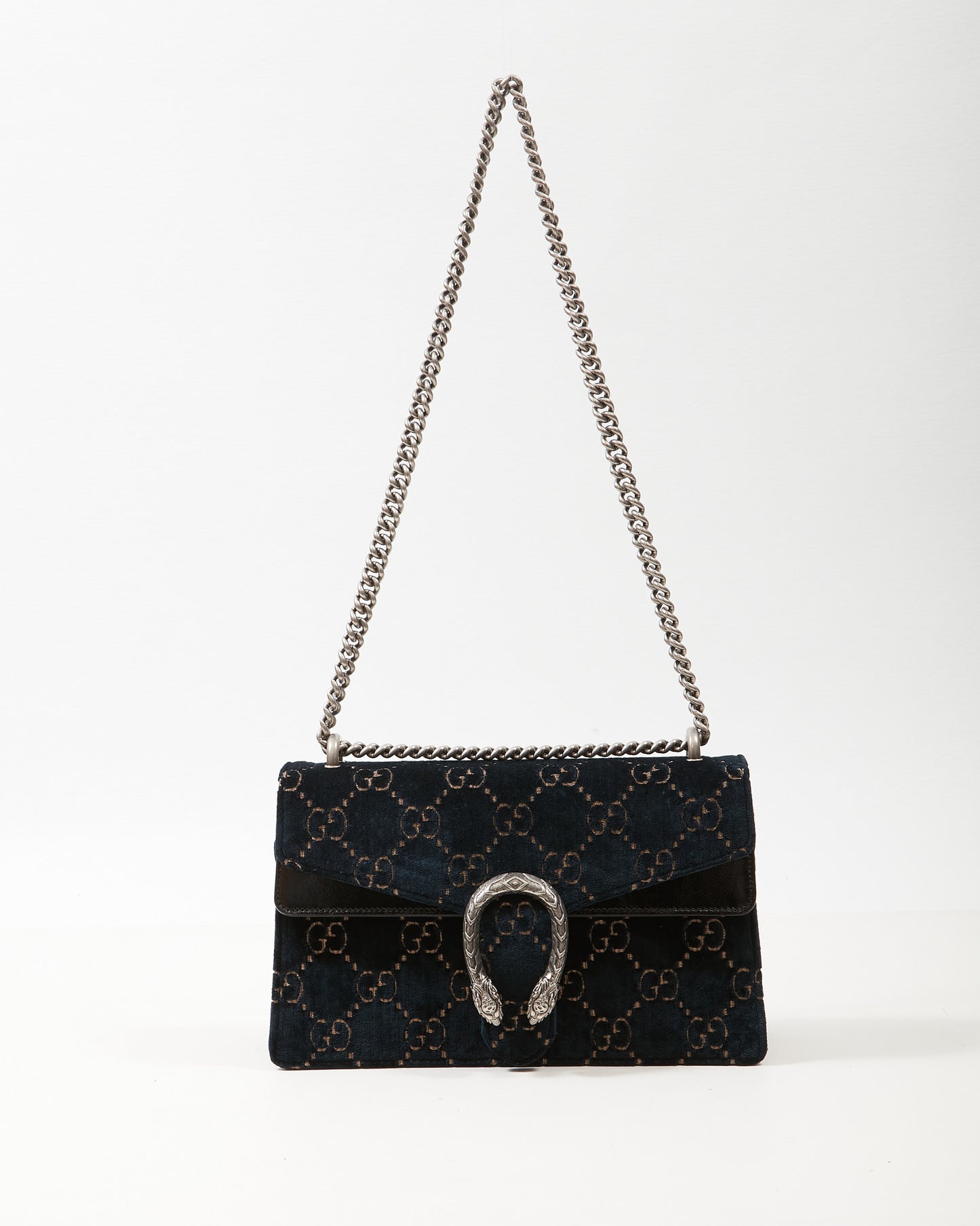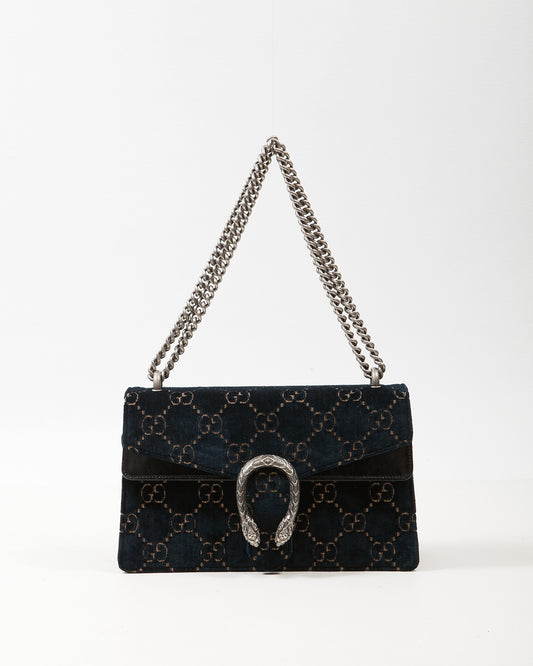 Navy Velvet GG Small Dionysus Shoulder Bag