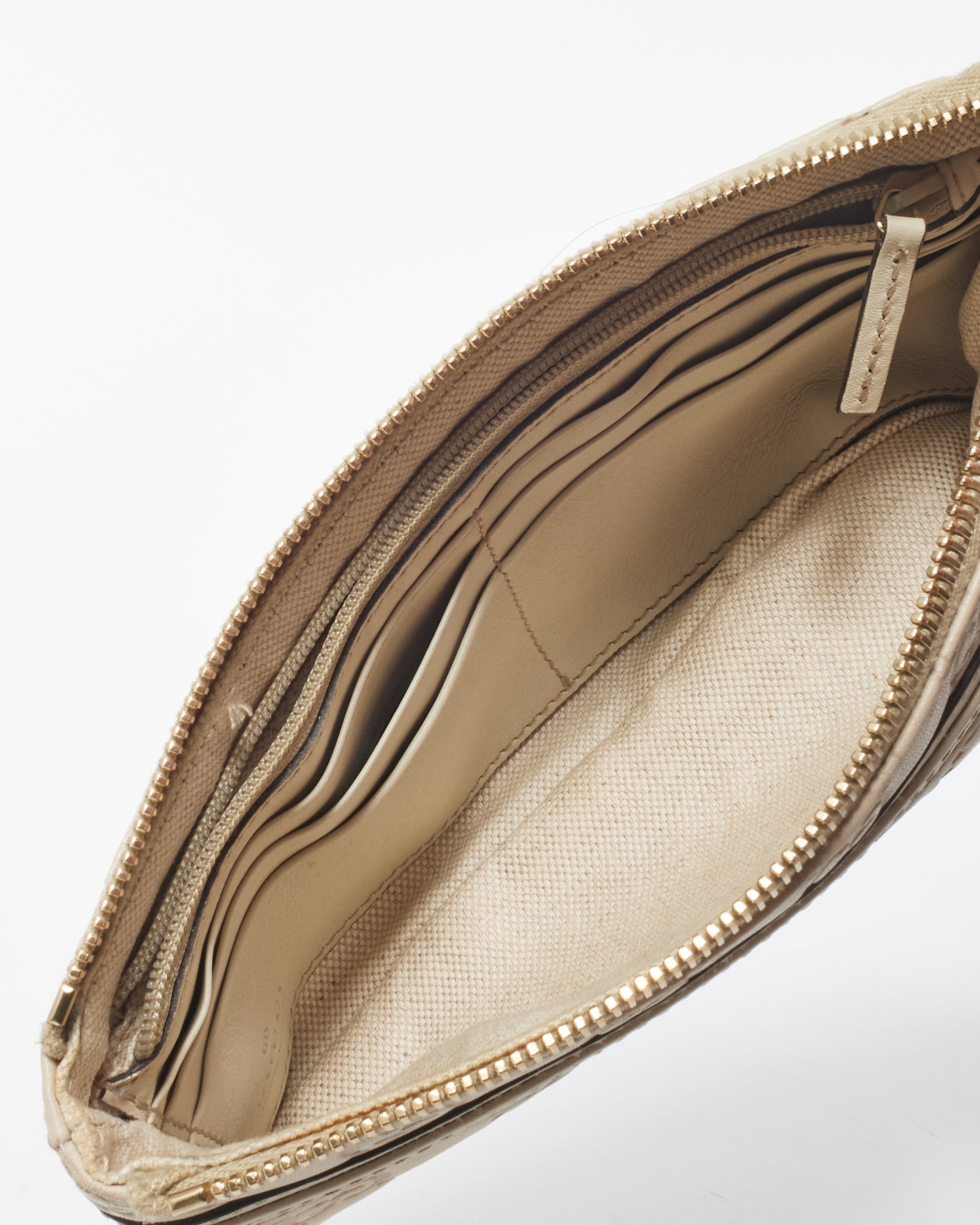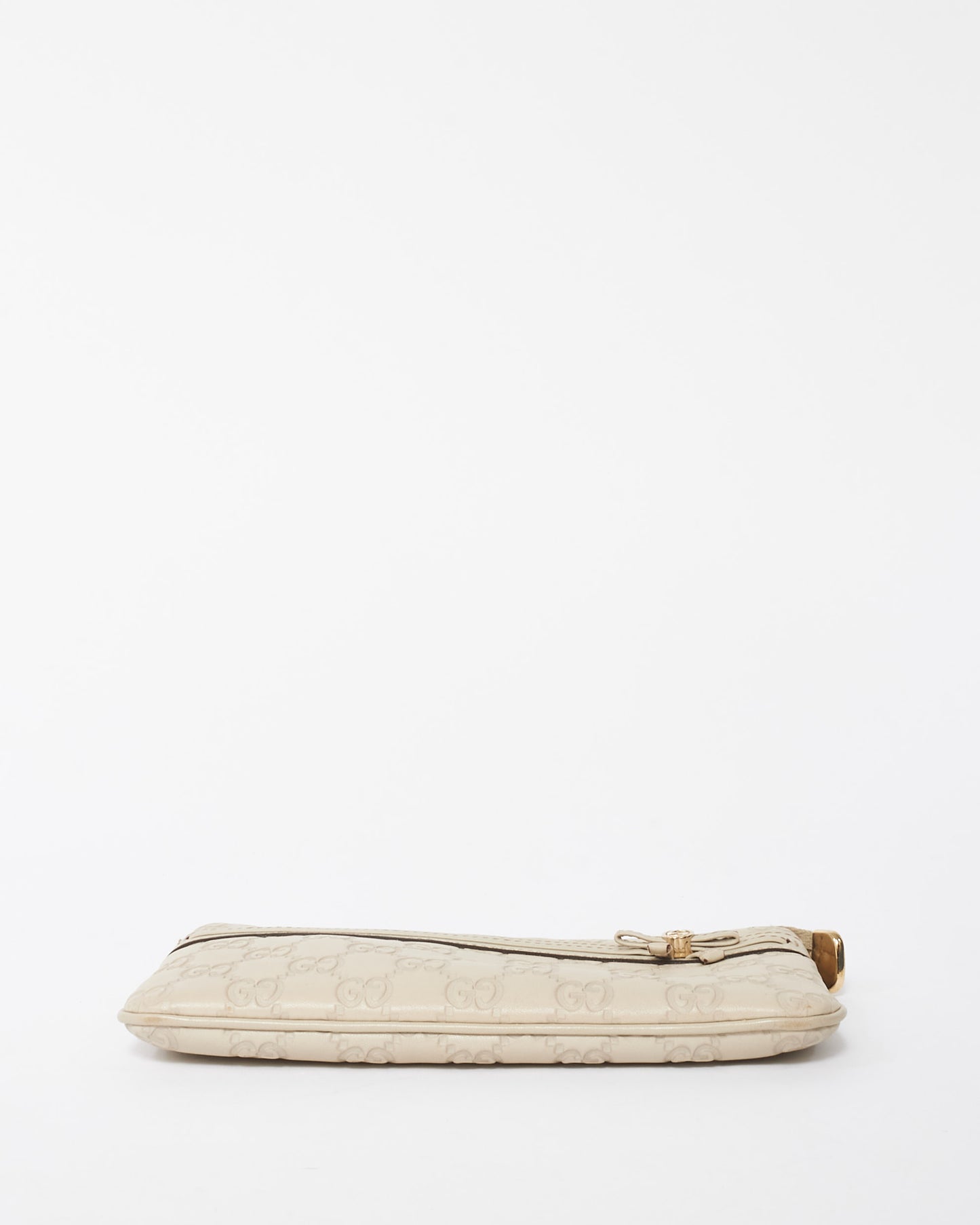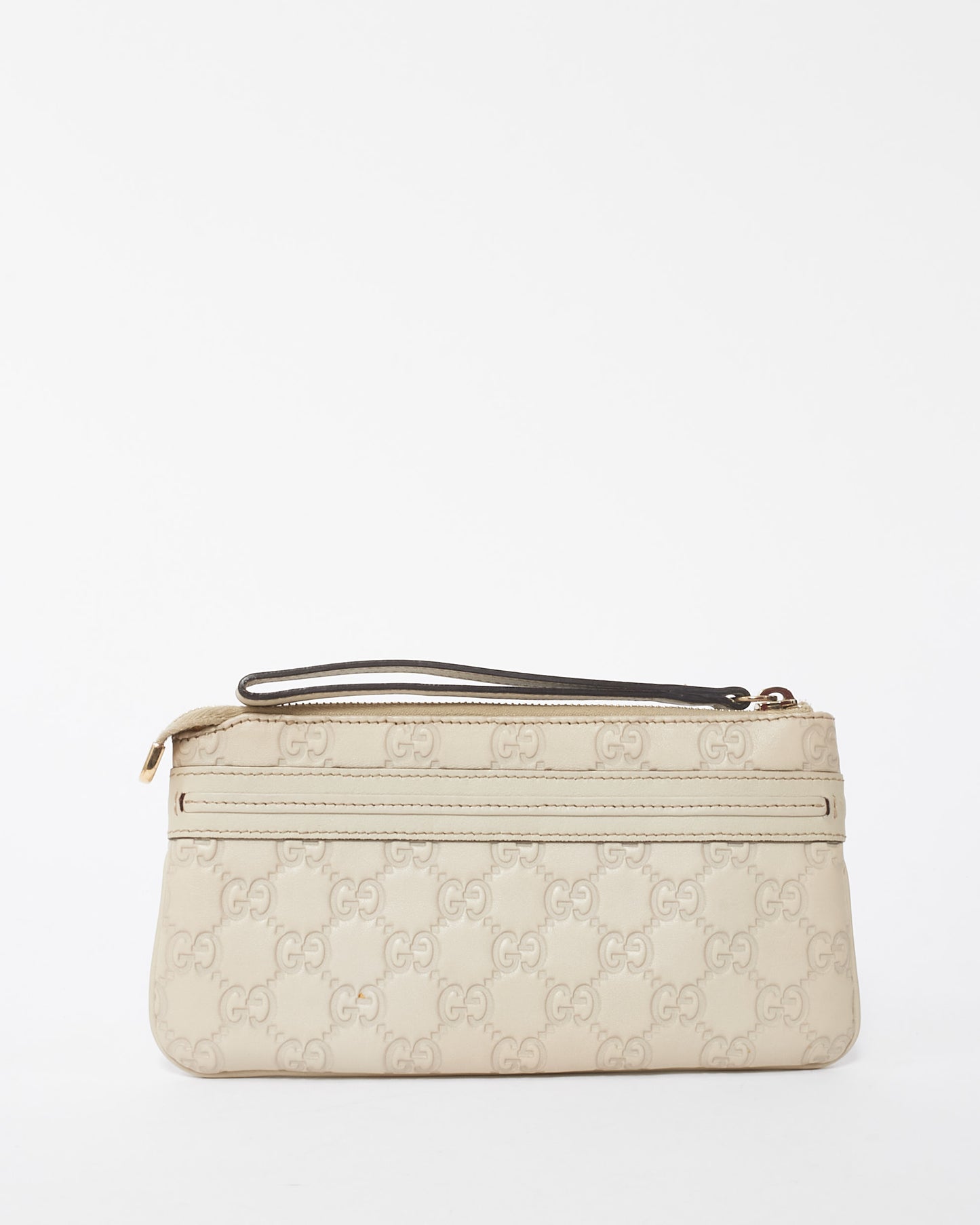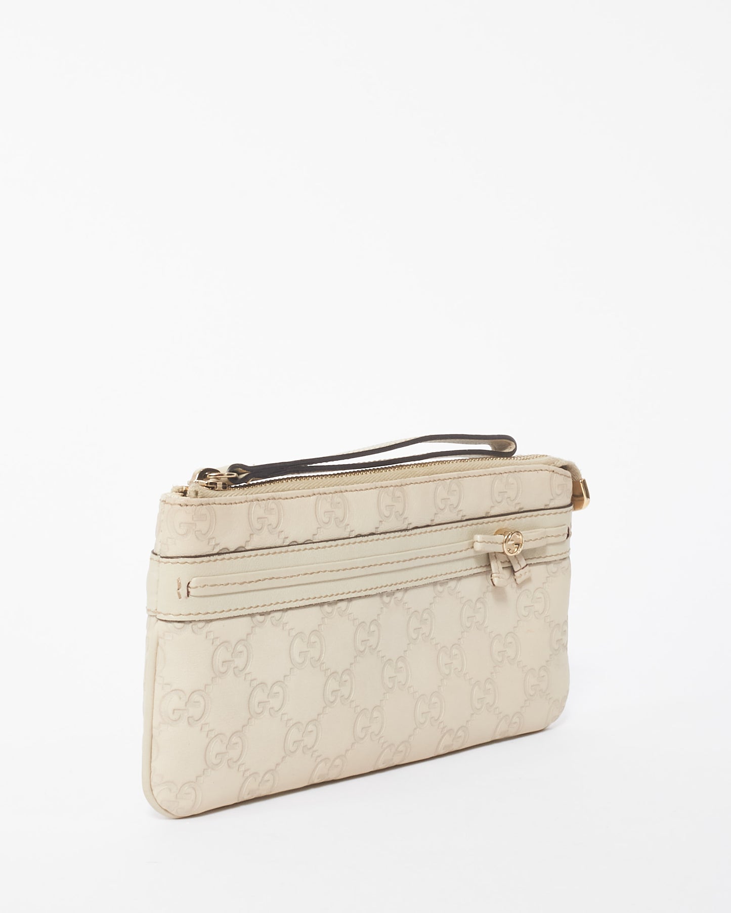 Explore Gucci's exquisite collection of Handbags, featuring this certified pre-owned Off-White Leather Guccisima Wrislet Clutch. Embodying timeless elegance and modern sustainability, each piece, including favorites like this, is authenticated by Retyche. Discover sustainable luxury — shop our current treasures or find inspiration for your next coveted find.