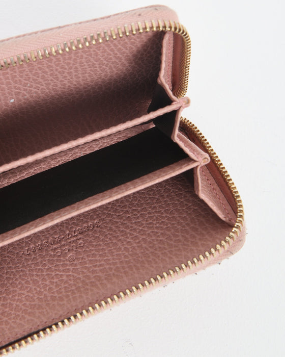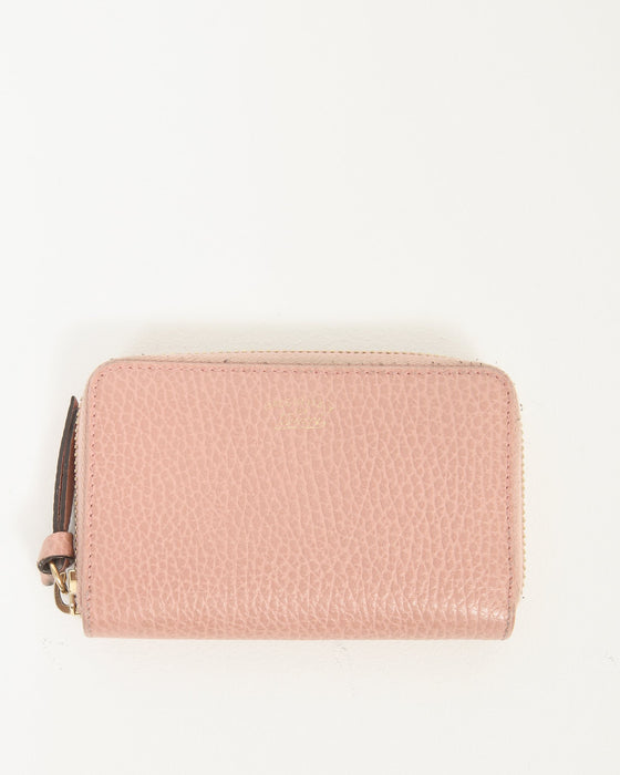 Pink Pebbled Leather Zippy Compact Wallet