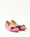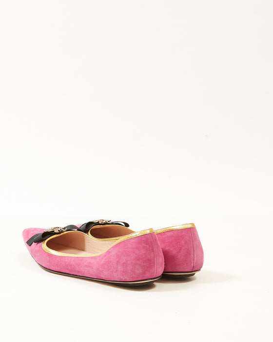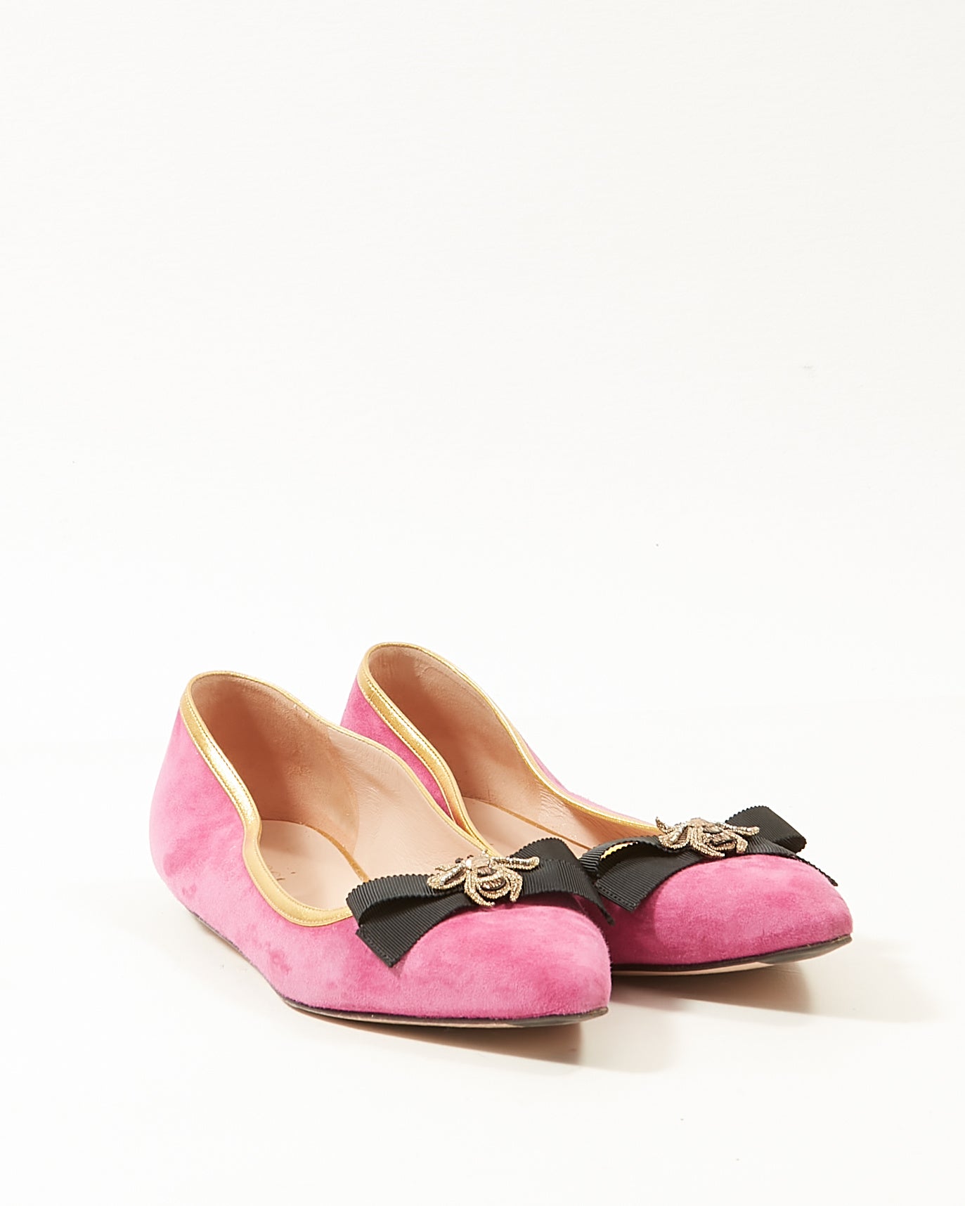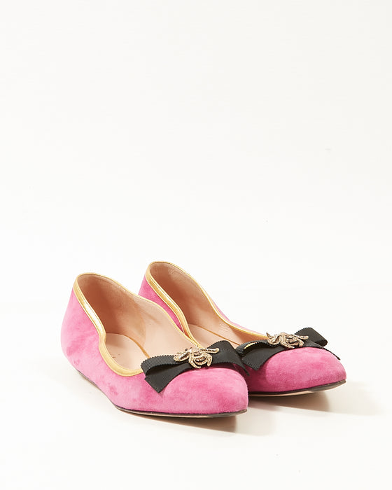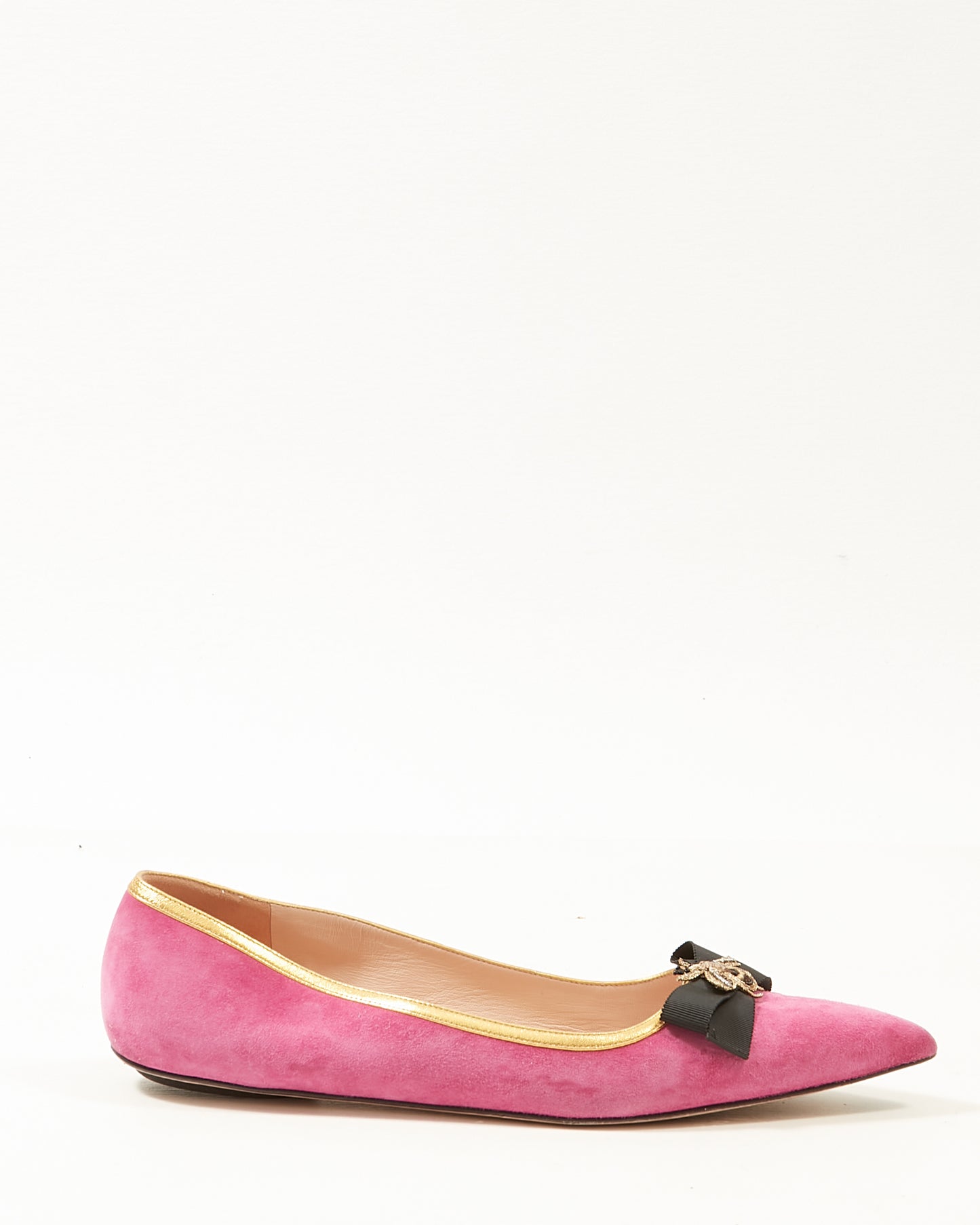 Pink Suede Embroidered Bee Gold Trim Flats - 39.5