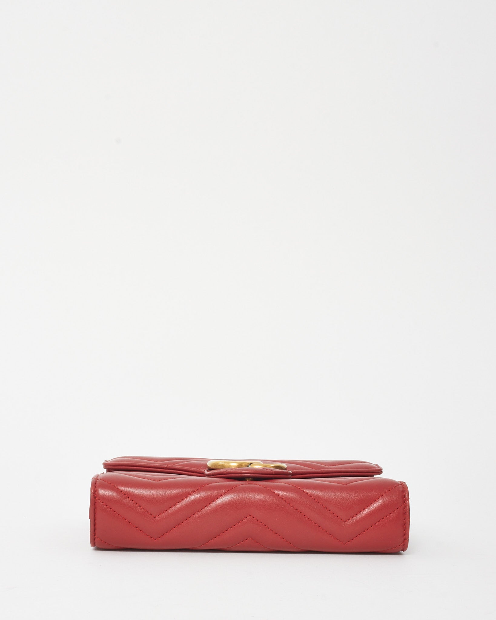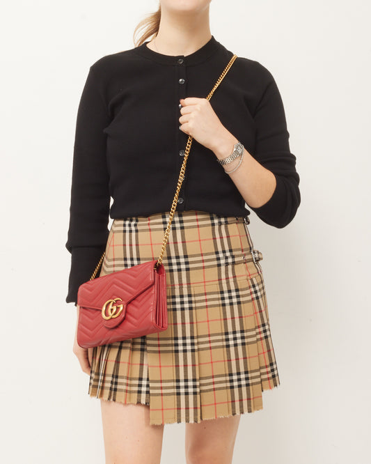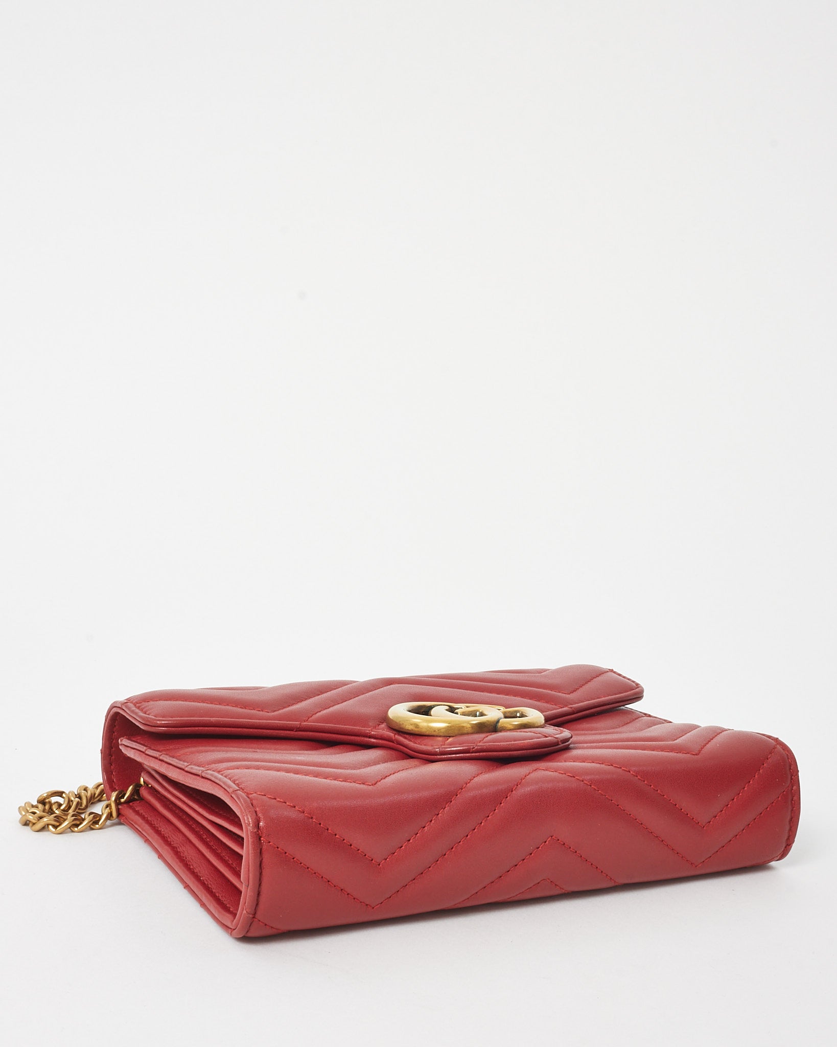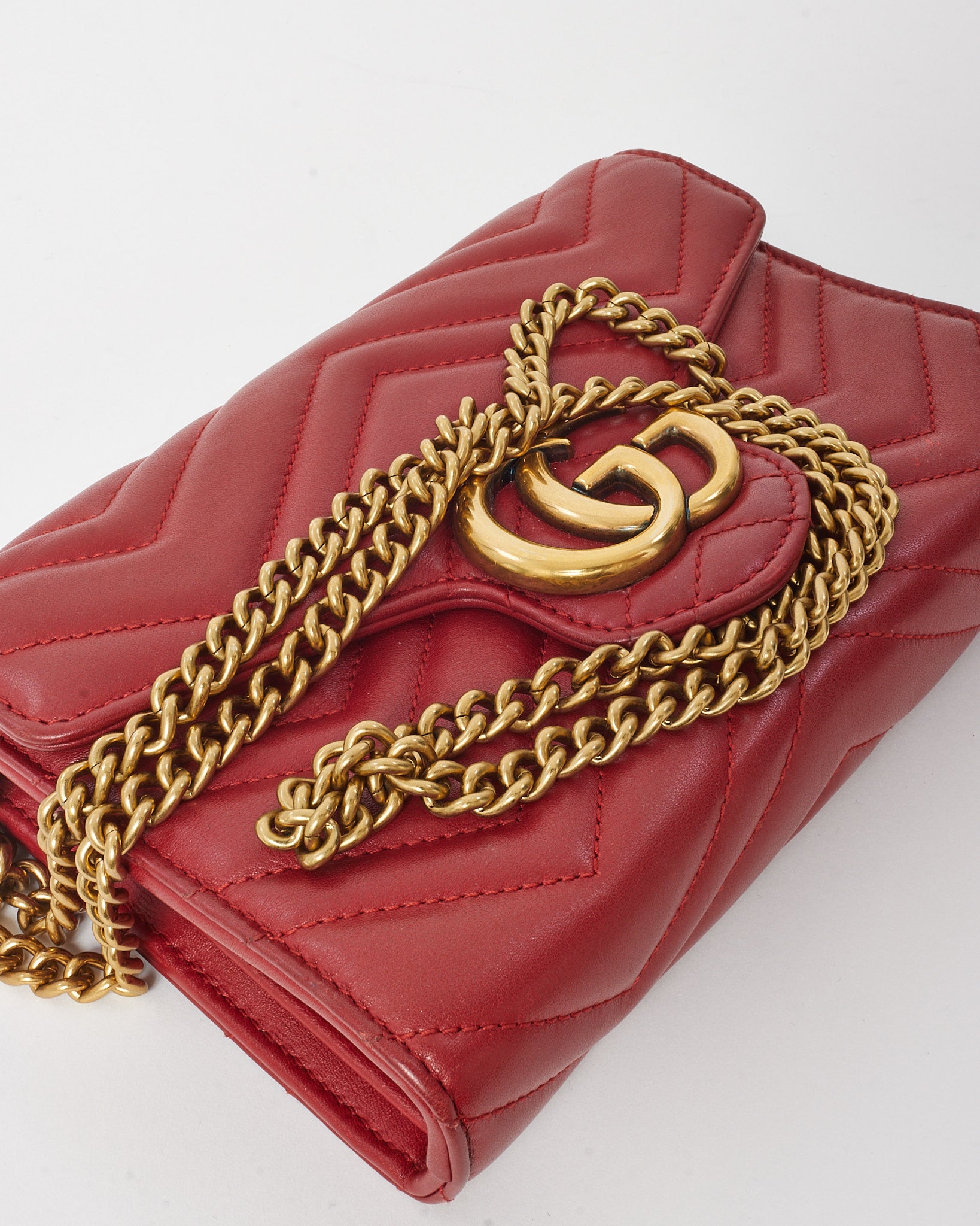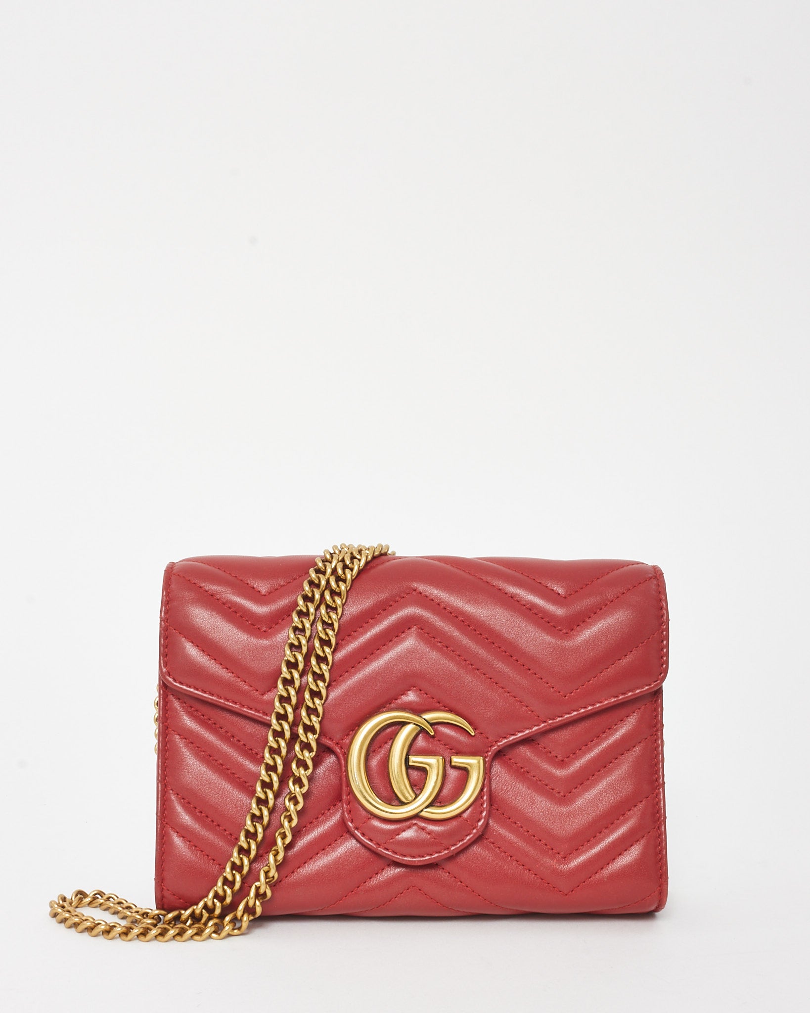 Red Chevron Leather GG Marmont (WOC) Wallet On Chain Crossbody Bag
