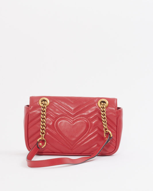 Red Leather Chevron GG Marmont Mini Flap Bag