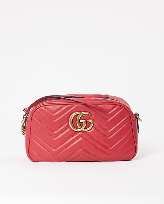 Red Leather Chevron Matelasse GG Marmont Small Camera Bag