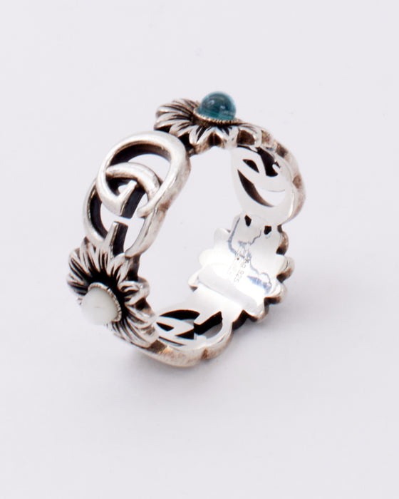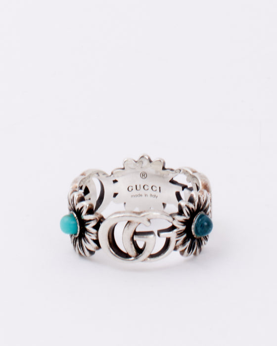 Silver With Turquoise and Blue Stone Flower GG Ring - 16