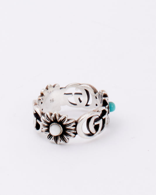 Silver With Turquoise and Blue Stone Flower GG Ring - 16