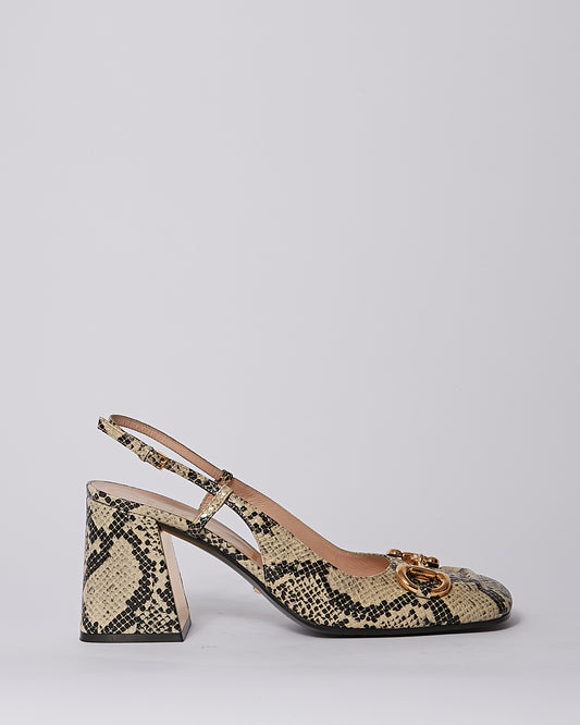 Snakeskin Horsebit Block Mid-heel Slingback Pumps - 40