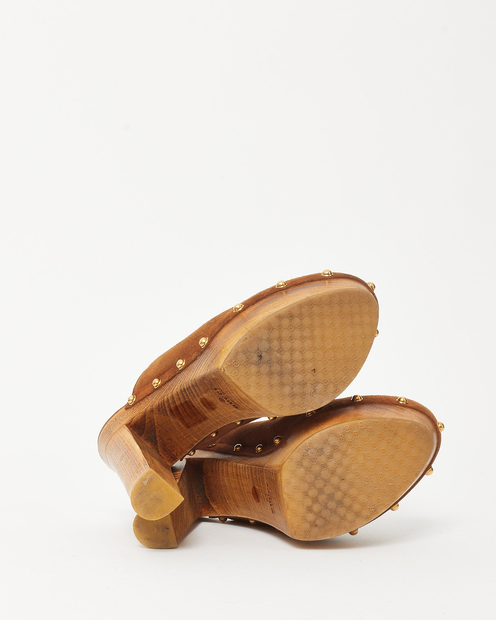 Tan Suede Studded Joplin Platform Clog Heels - 38