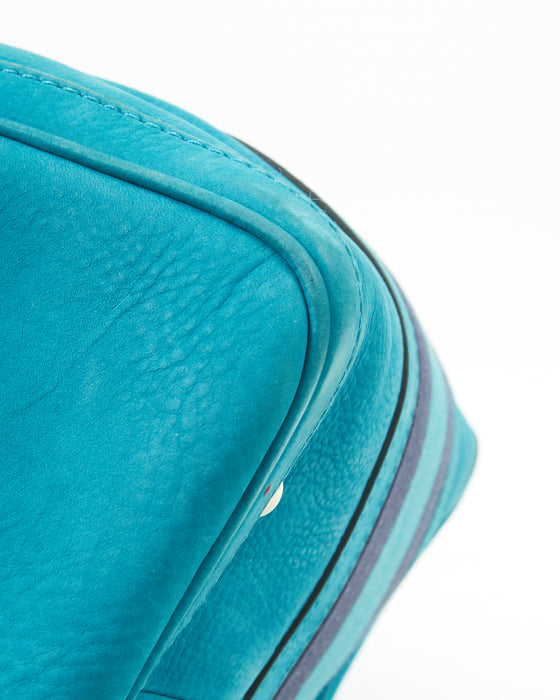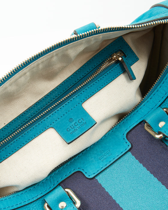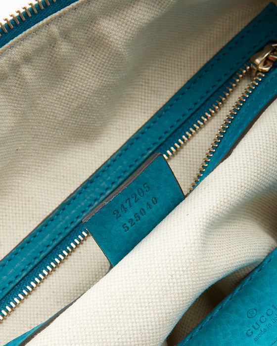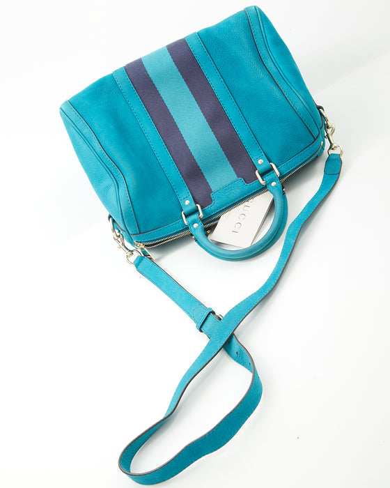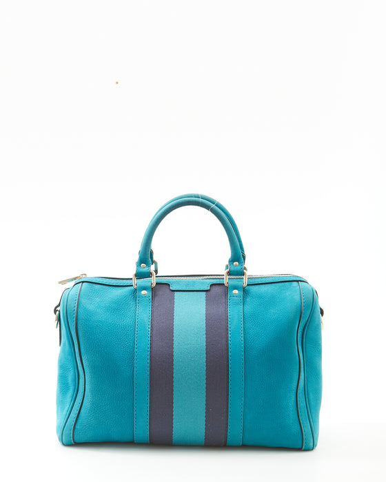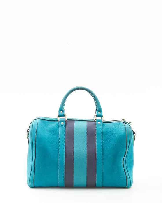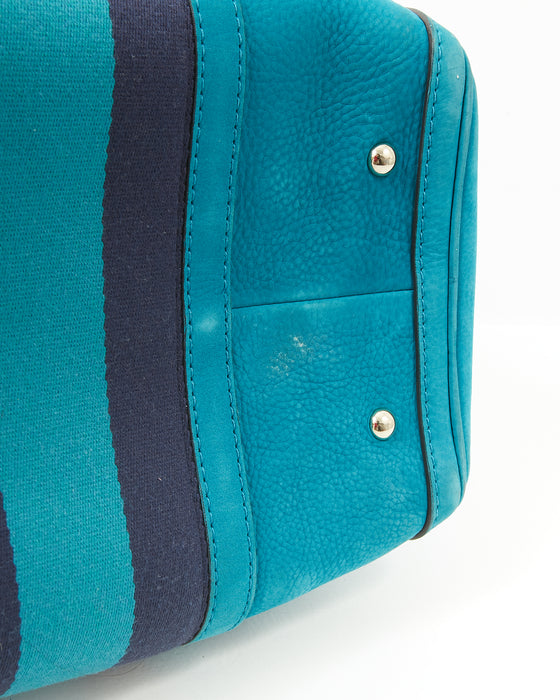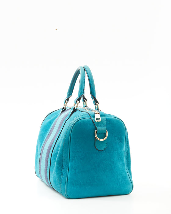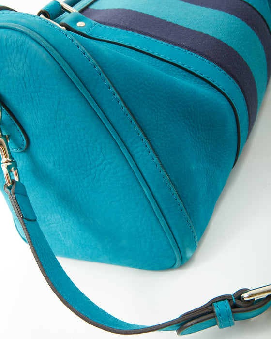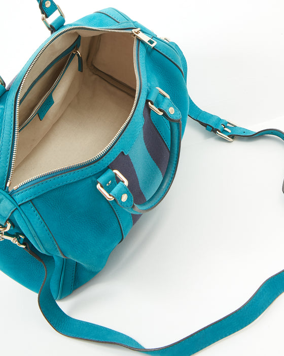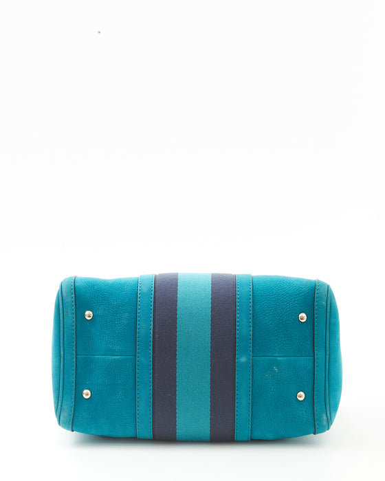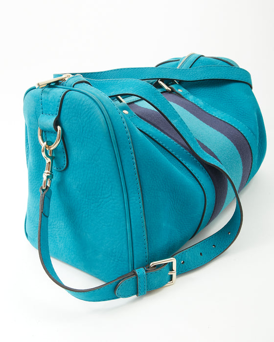 Teal Blue Suede Web Boston Bag