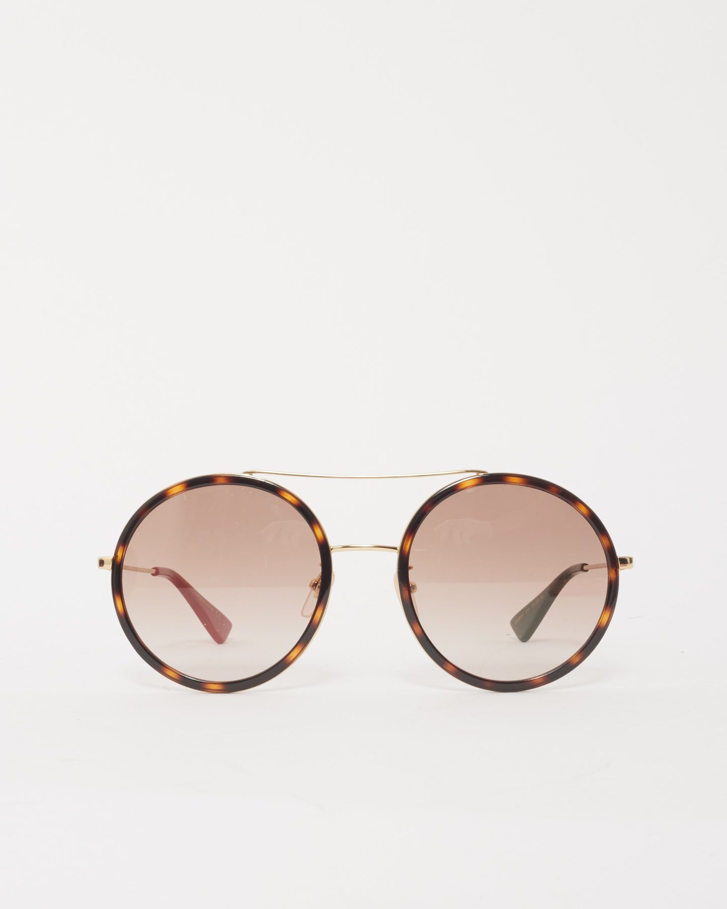 Tortoise Gradient Lens Round Frame Aviator GG0061S Sunglasses