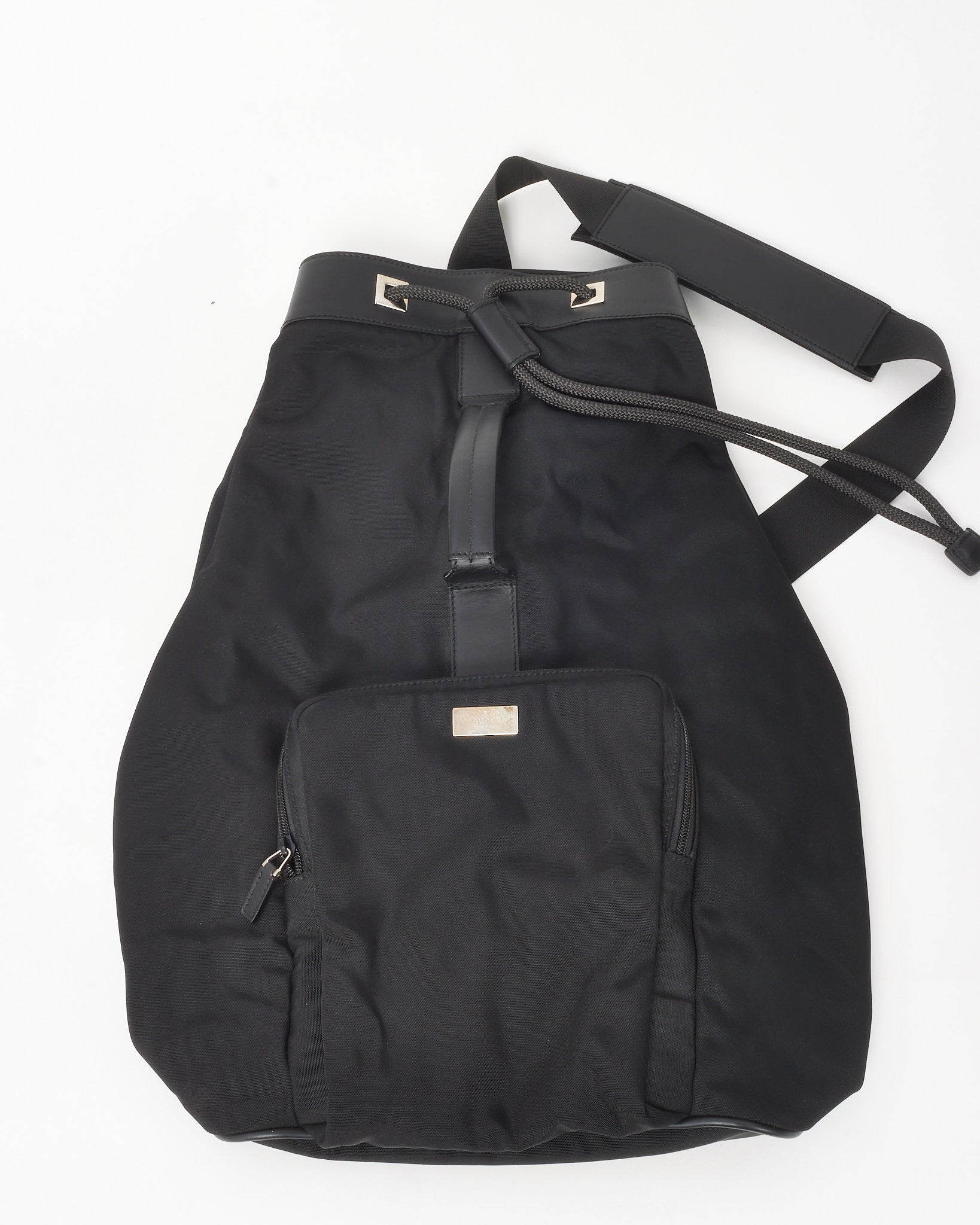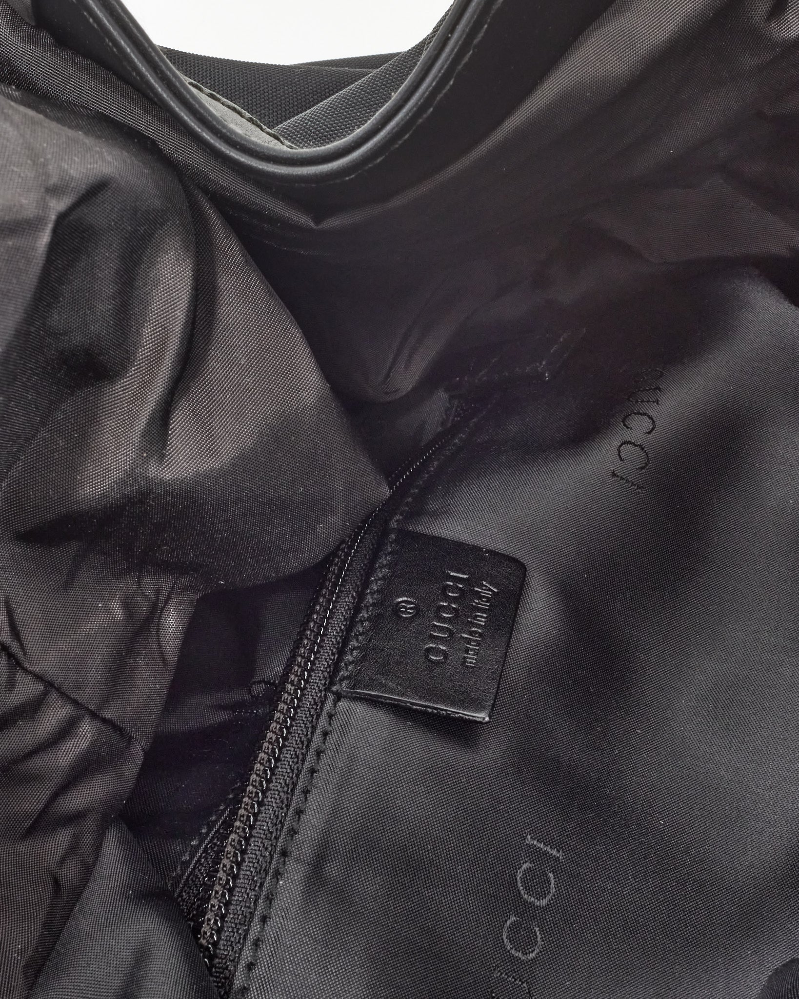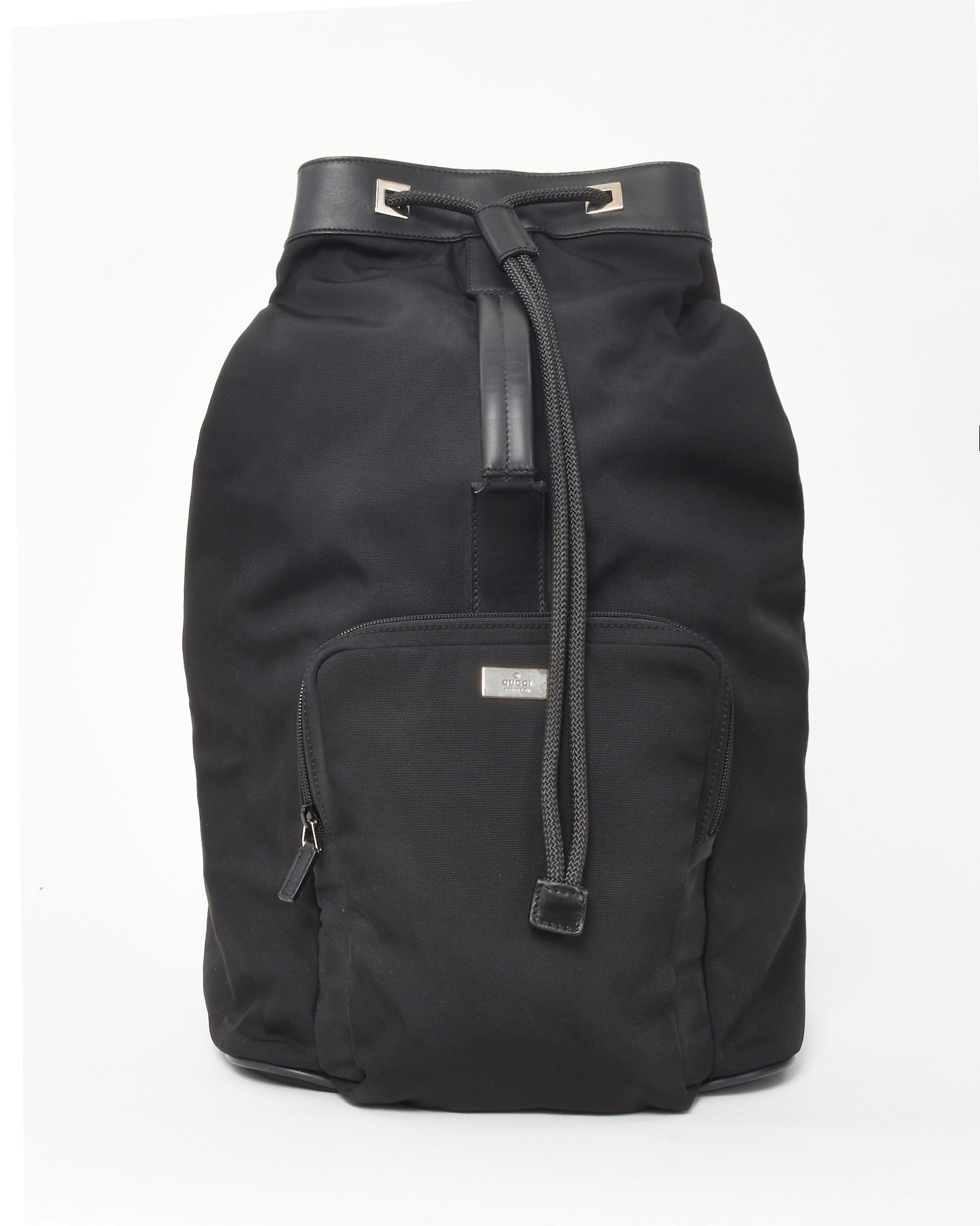 A functional icon with vintage appeal, this pre-loved authentic Gucci sling backpack is crafted in black monogram canvas with a compact, sporty silhouette. The drawstring closure and single shoulder strap offer easy access and comfortable wear, while leather trim adds structure and contrast. A versatile everyday carry with timeless Gucci heritage and street-ready charm.