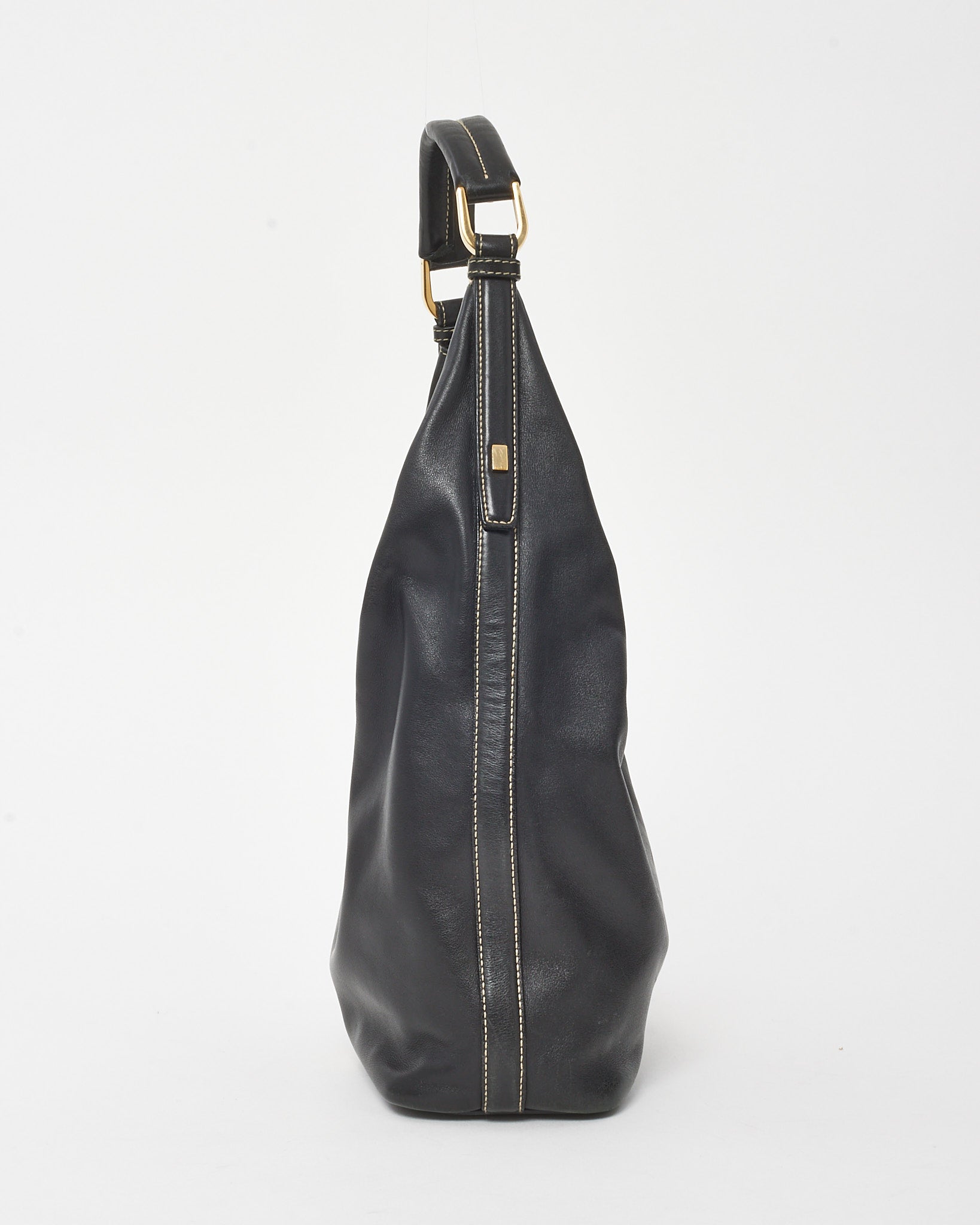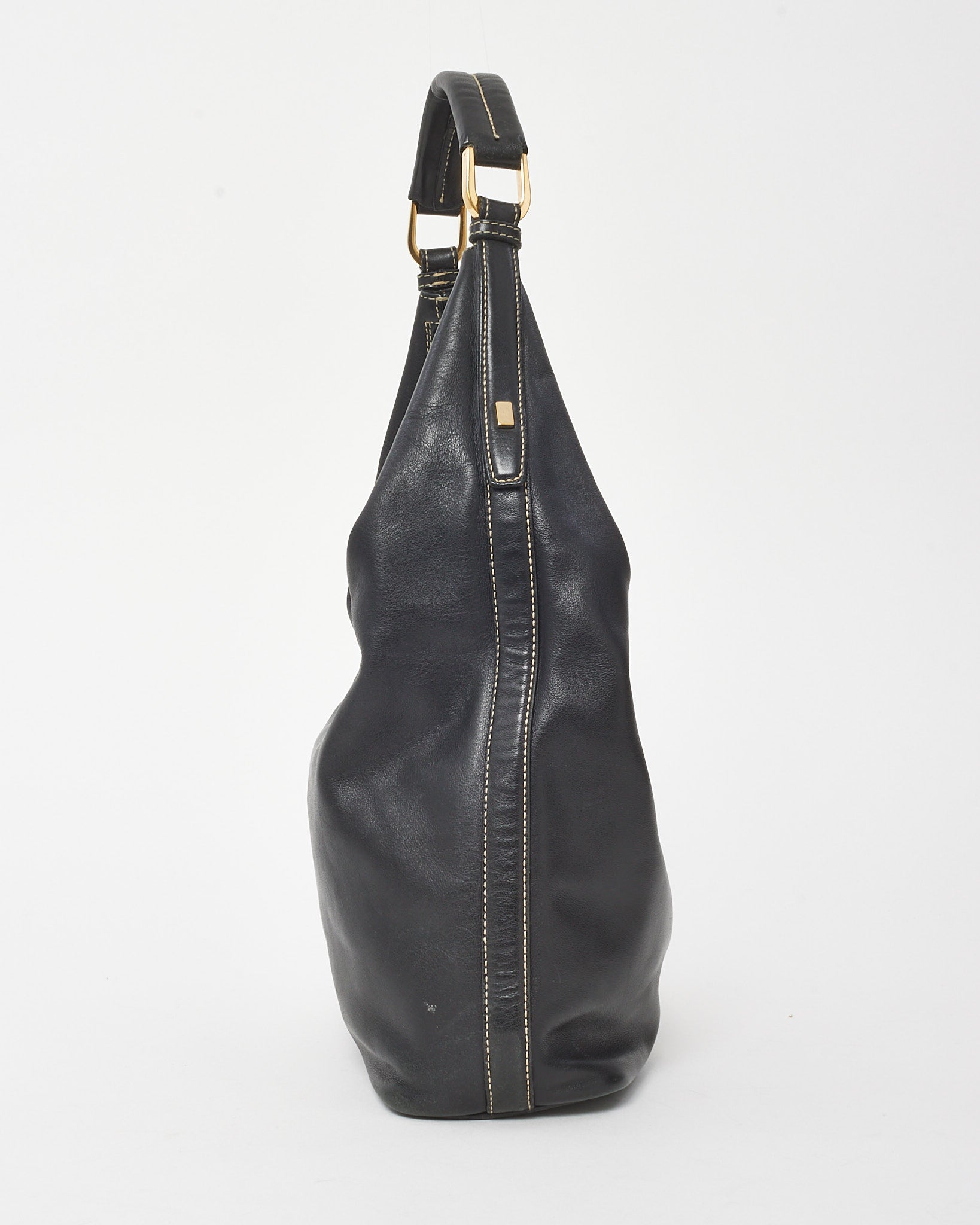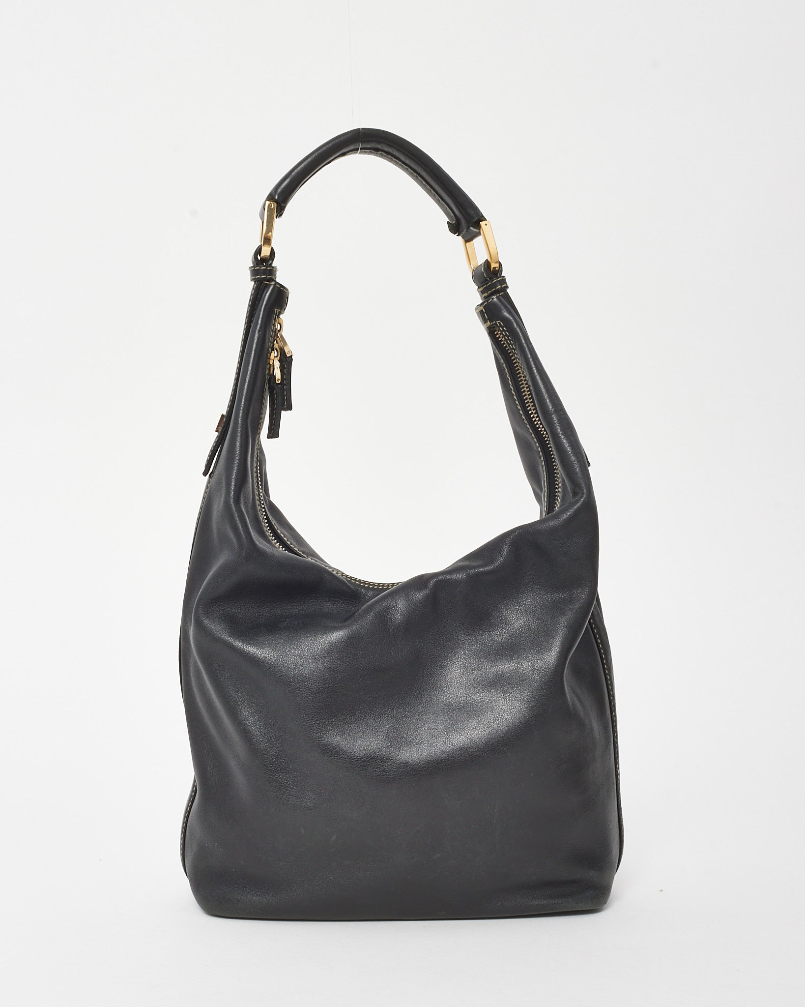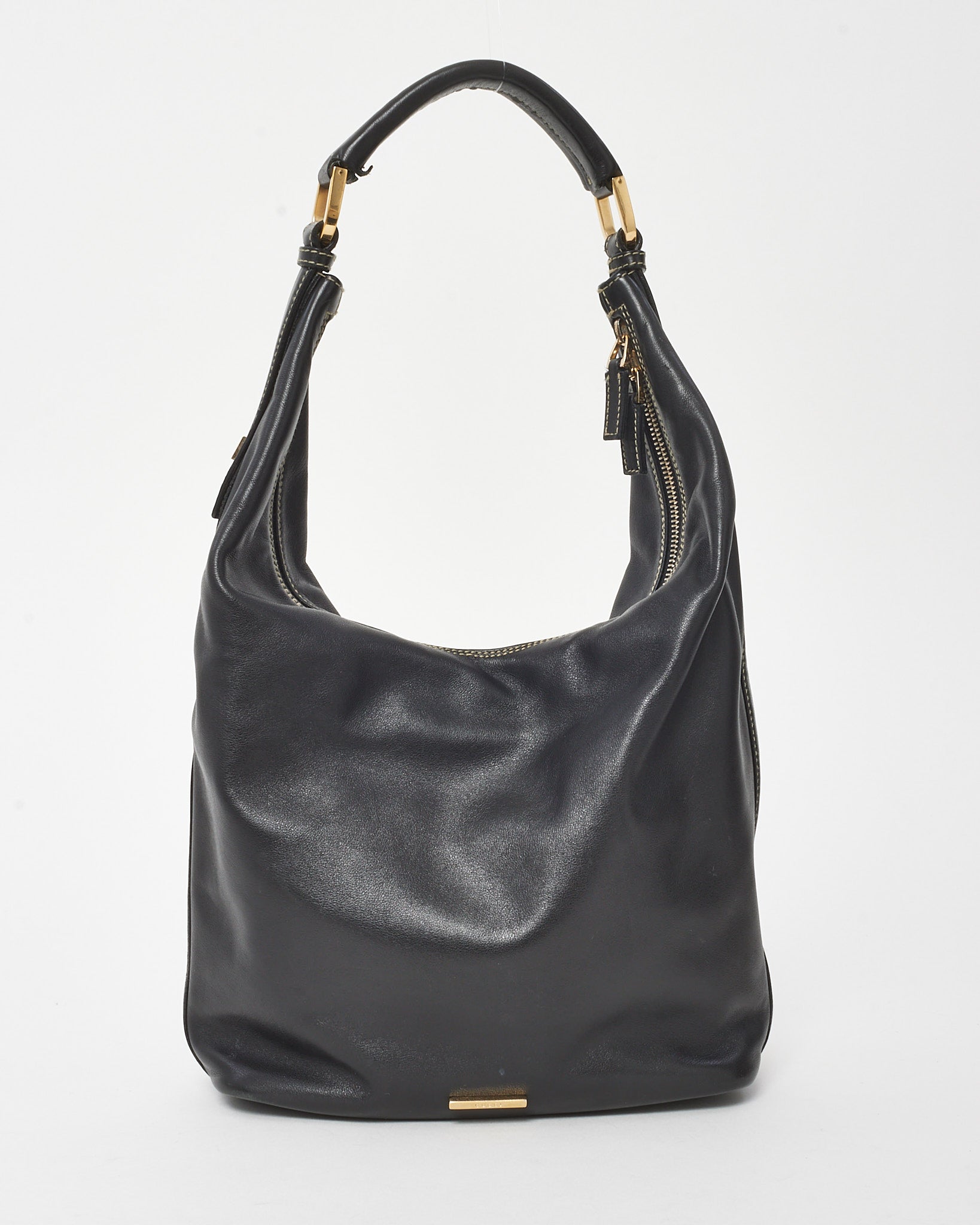 Vintage Black Leather Zip Hobo Shoulder Bag