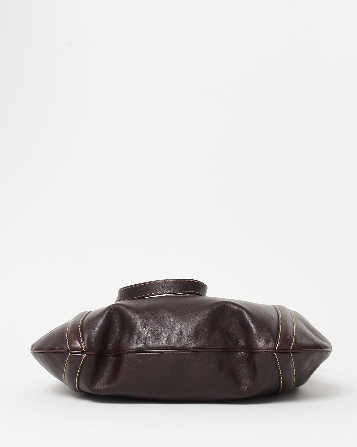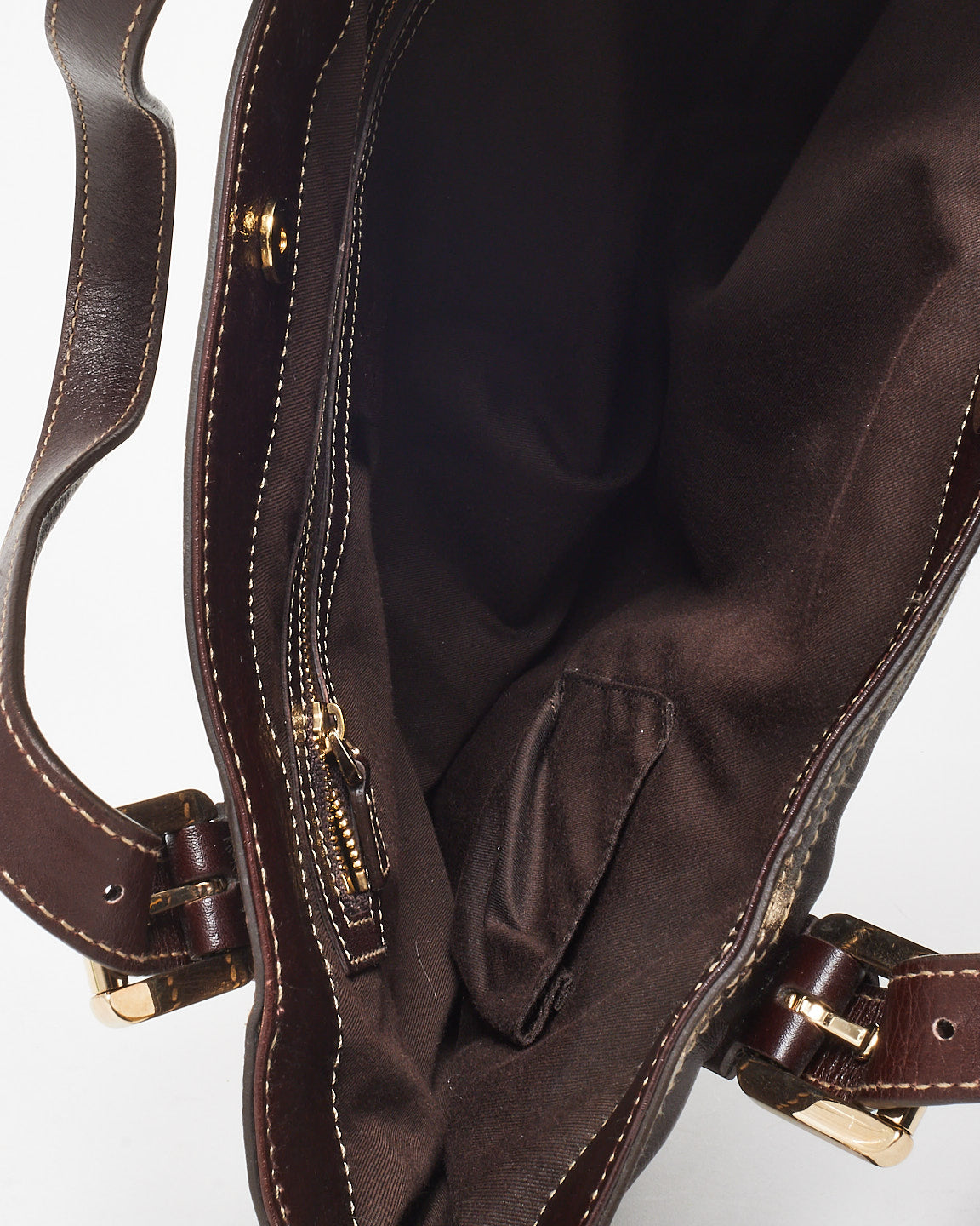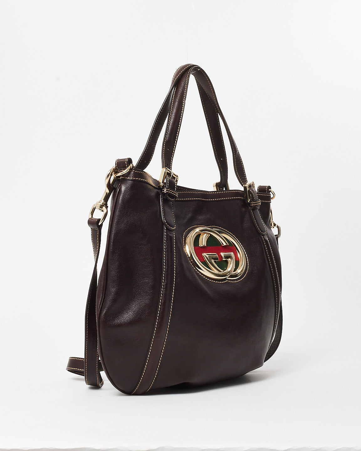 Vintage Brown Leather Silver GG Logo & Web Shoulder Bag W/ Strap