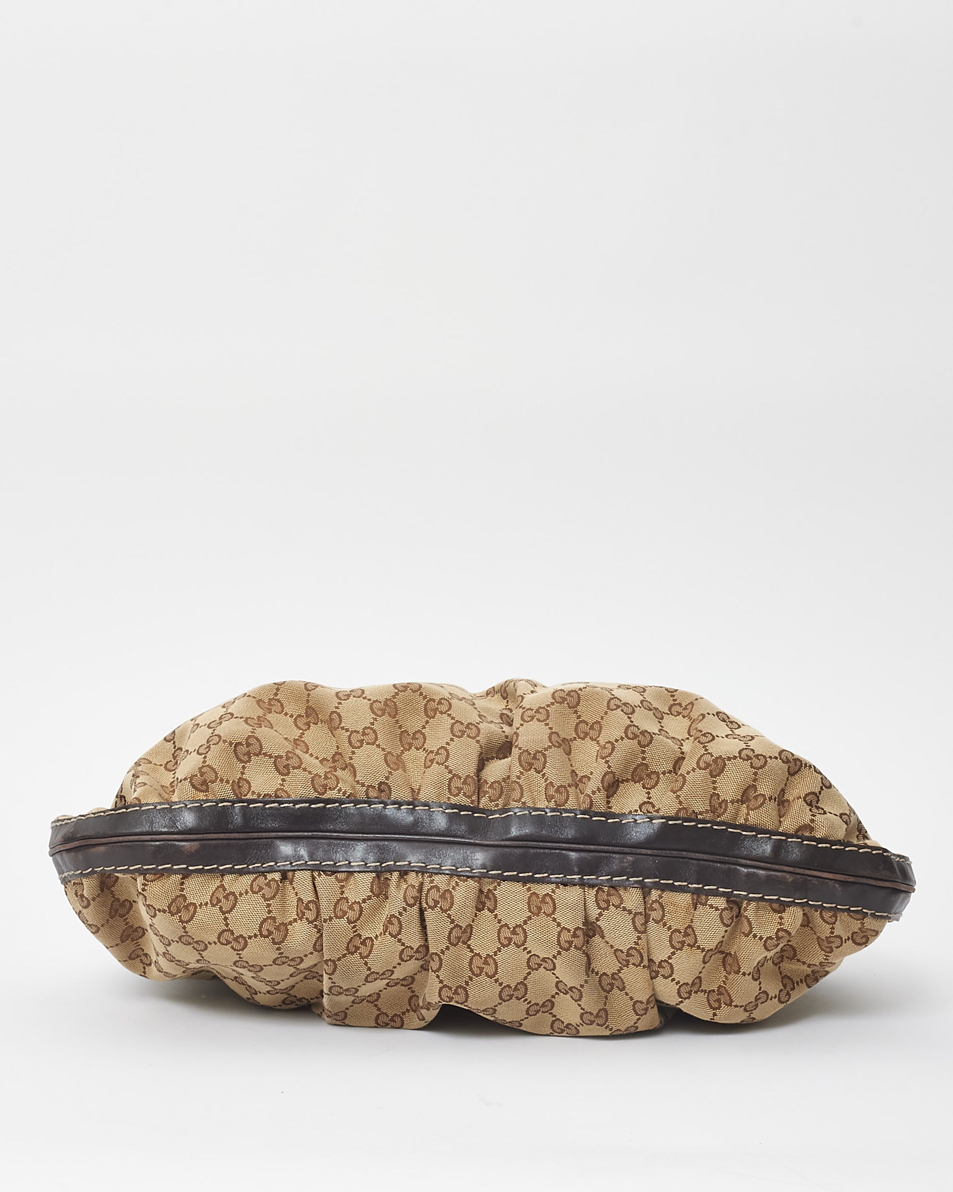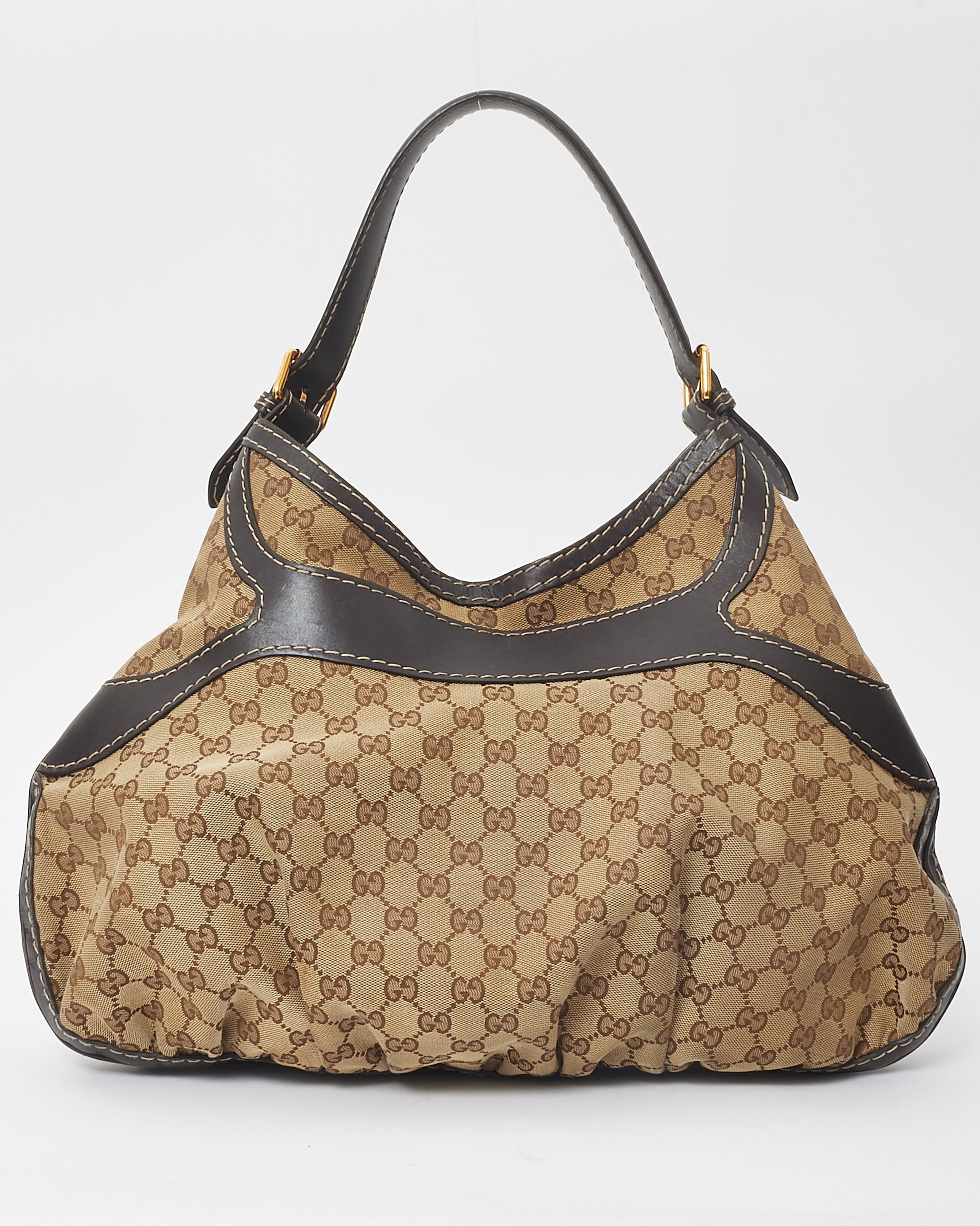Explore Gucci's exquisite collection of handbags, featuring this certified pre-owned Vintage Brown Monogram Canvas Buckle Hobo Shoulder Bag. Embodying timeless elegance and modern sustainability, each piece, including favorites like this, is authenticated by Retyche. Discover sustainable luxury — shop our current treasures or find inspiration for your next coveted find.