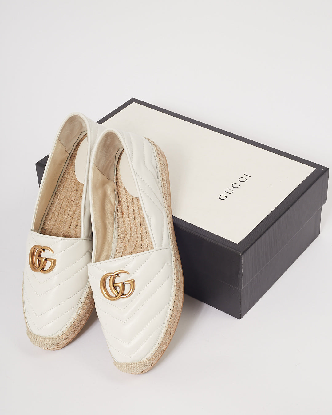 White Chevron Matelasse GG Marmont Espadrilles - 40.5