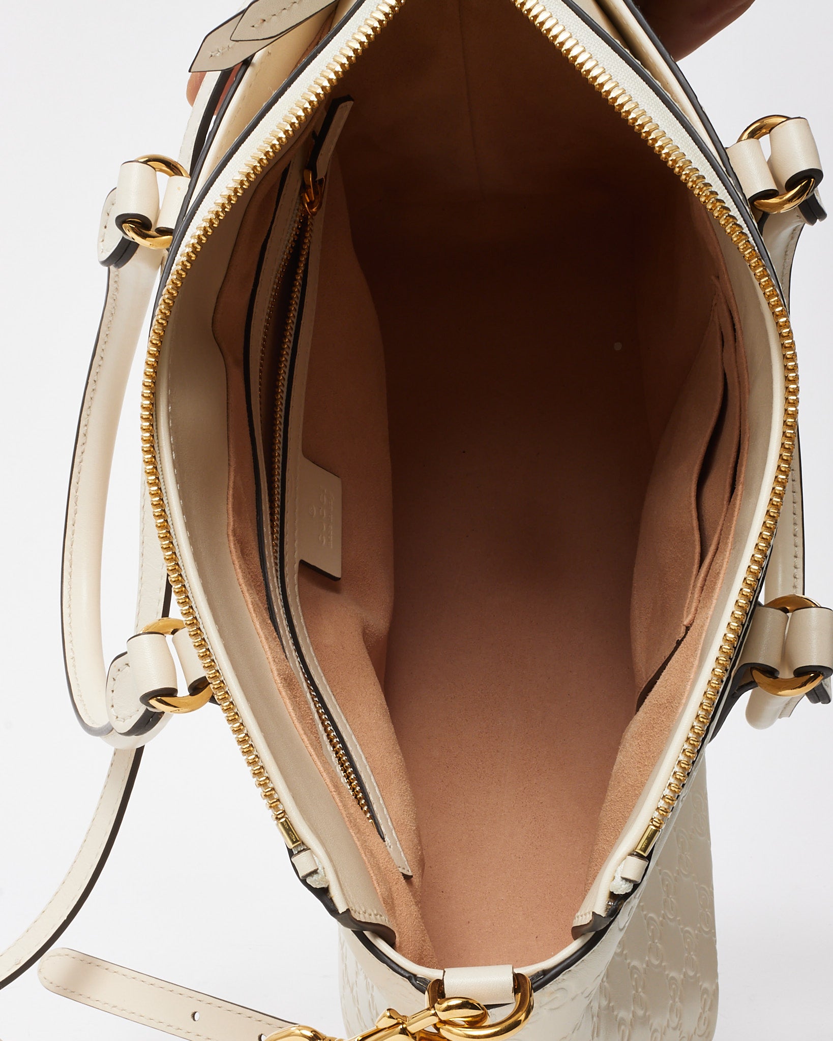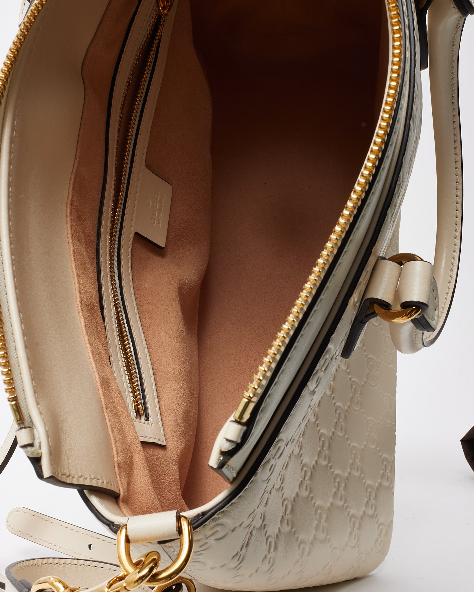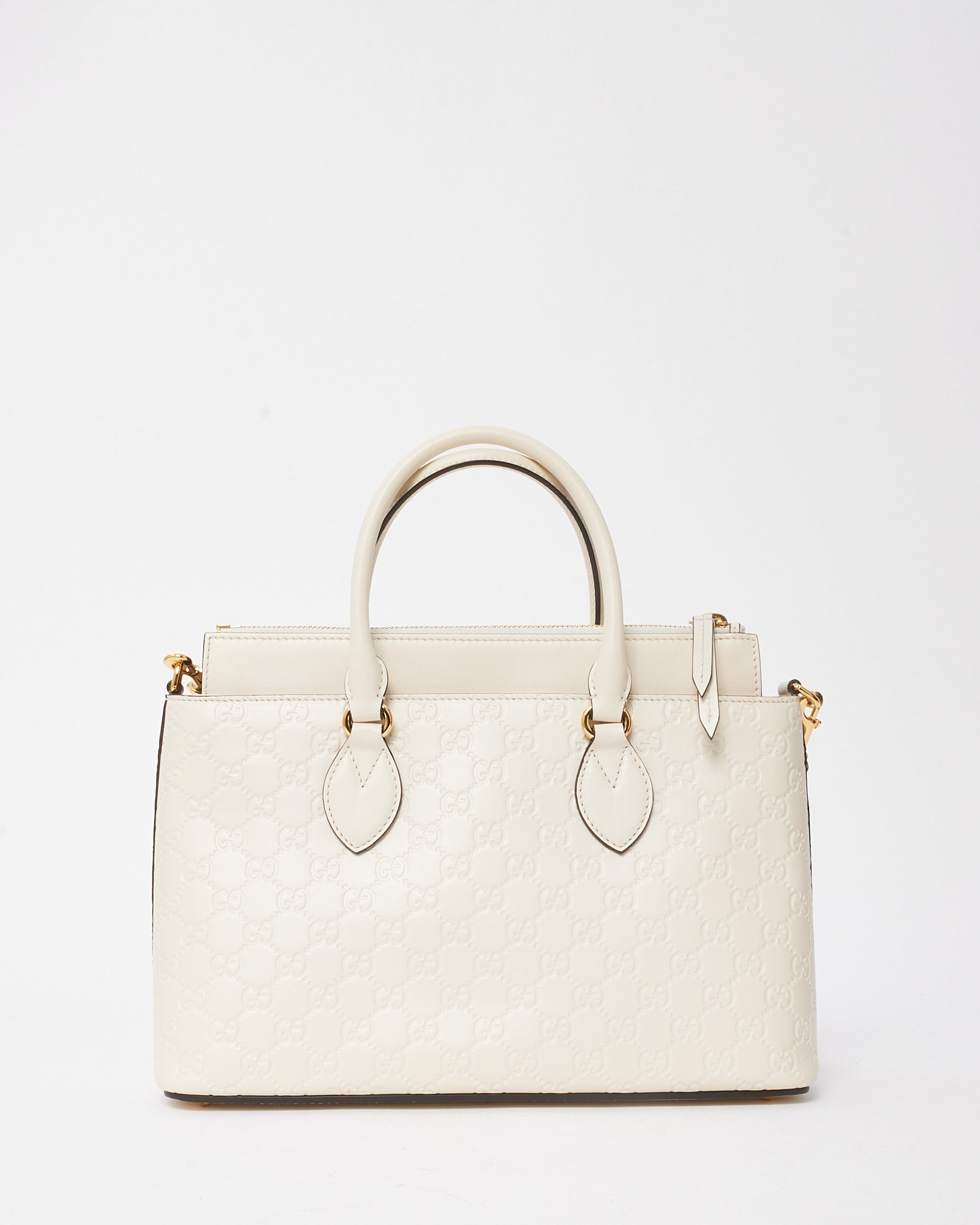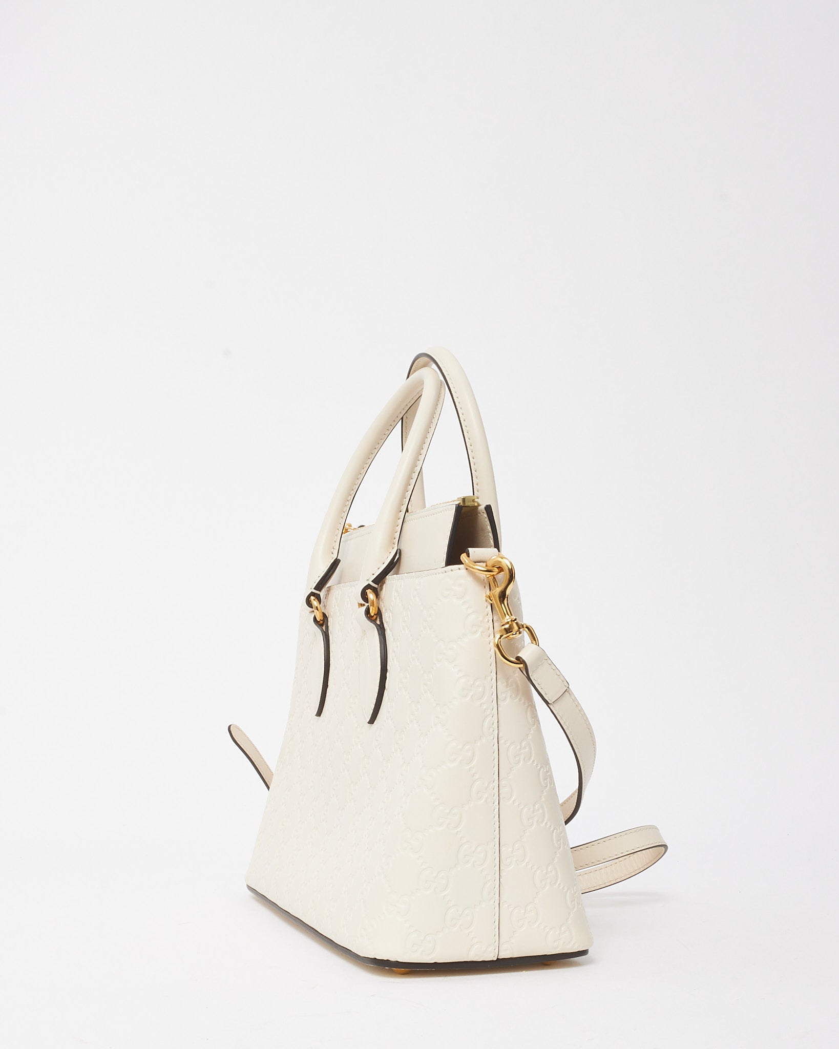 White GG Guccissima Embossed Leather 2Way Convertible Tote Bag