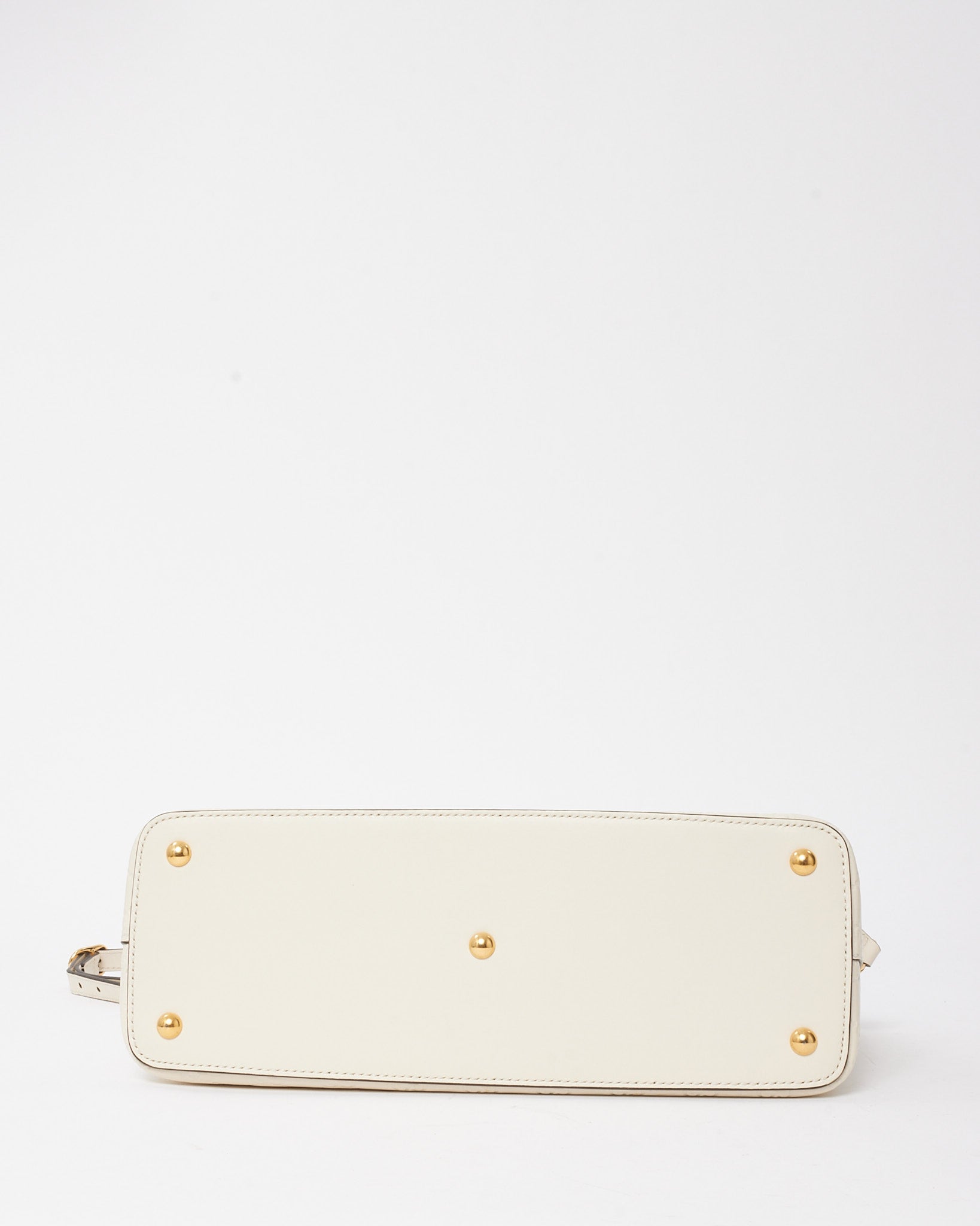 Elevate your everyday style with this pre-loved authentic Gucci convertible tote, crafted in crisp white Guccissima-embossed leather for a luxurious yet versatile statement. The structured silhouette features dual rolled leather handles and a detachable shoulder strap, offering the option to carry it by hand or wear it crossbody. Polished silver-tone hardware and subtle logo detailing enhance its refined finish. Spacious yet sleek, this bag transitions effortlessly from weekday sophistication to weekend ease.