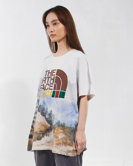 x The North Face White/Green Unisex Trail Print Oversized T-Shirt - L