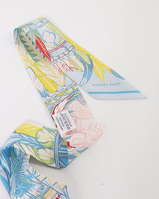 Hermes Baby Blue Multi Color Print Silk Twilly Scarf