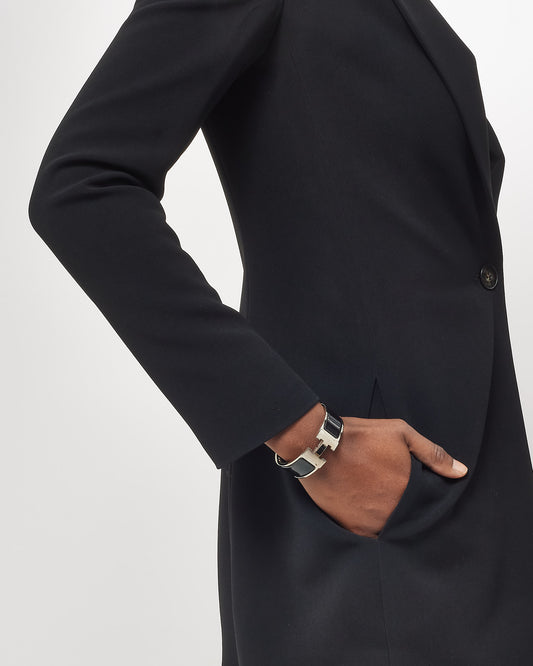 Sophistication meets timeless design with this authentic pre-owned Hermès Black and Silver Enamel Clic Clac H Bracelet - GM. Crafted with sleek black enamel and polished silver-tone hardware, this iconic bracelet embodies Hermès’ renowned elegance and impeccable craftsmanship.