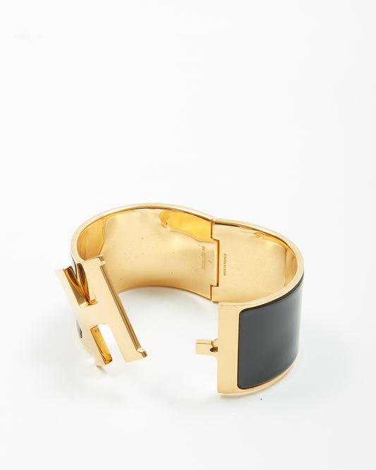 Hermes Black Enamel Gold Plated Extra Large H Clic Bracelet