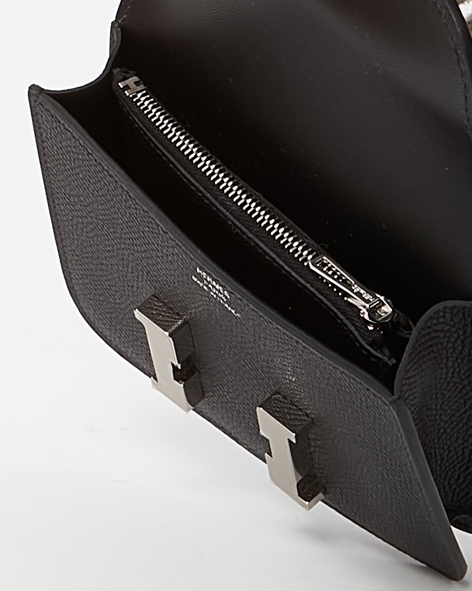 Elevate your essentials with this pre-loved authentic Hermès Black Epsom Leather Constance Slim Wallet PHW, crafted in structured Epsom leather for a refined, durable finish. The sleek wallet silhouette is accented with the iconic Hermès H clasp in palladium hardware, delivering timeless sophistication and unmistakable heritage style. Designed with a thoughtfully organized interior for cards, cash, and small essentials, this Hermès wallet balances practicality with elegant minimalism. A coveted luxury accessory that showcases impeccable craftsmanship and the enduring elegance of Hermès design.
