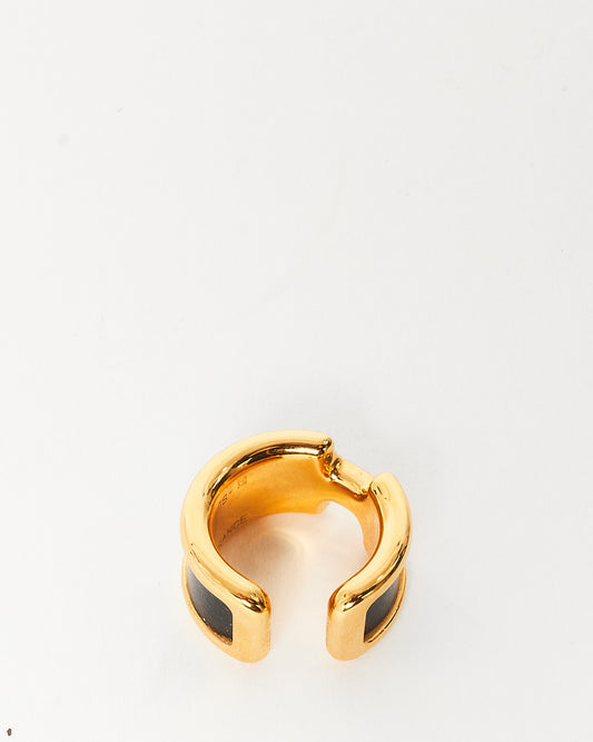 This pre-owned authentic Hermès Black & Gold Ear Cuff is a striking blend of black enamel and polished gold plating, offering a sleek, minimalist design that exudes sophistication. Crafted with precision, this ear cuff provides a comfortable fit and elevates any look—day or night. Shop pre-owned authentic Hermès accessories at Retyche.
