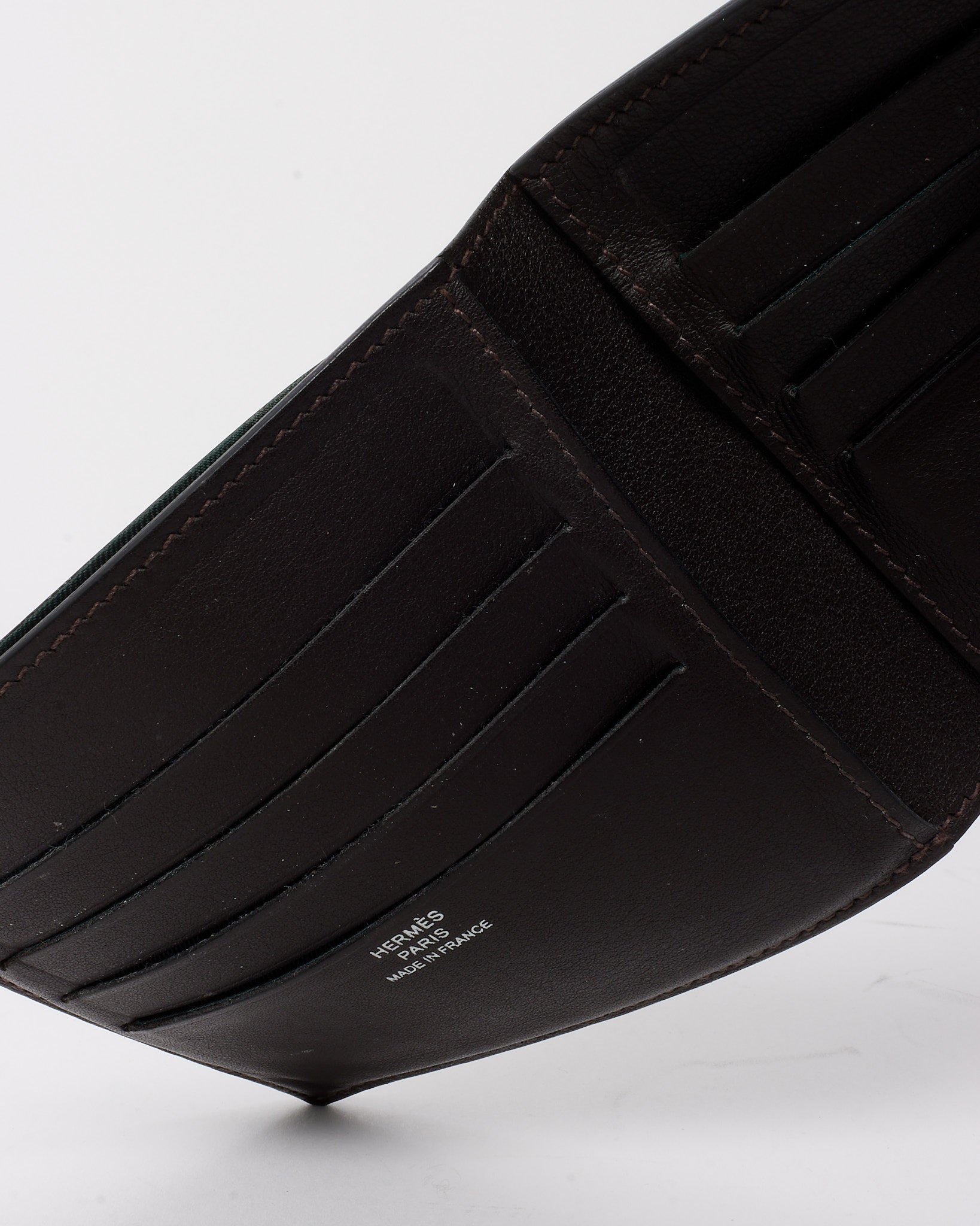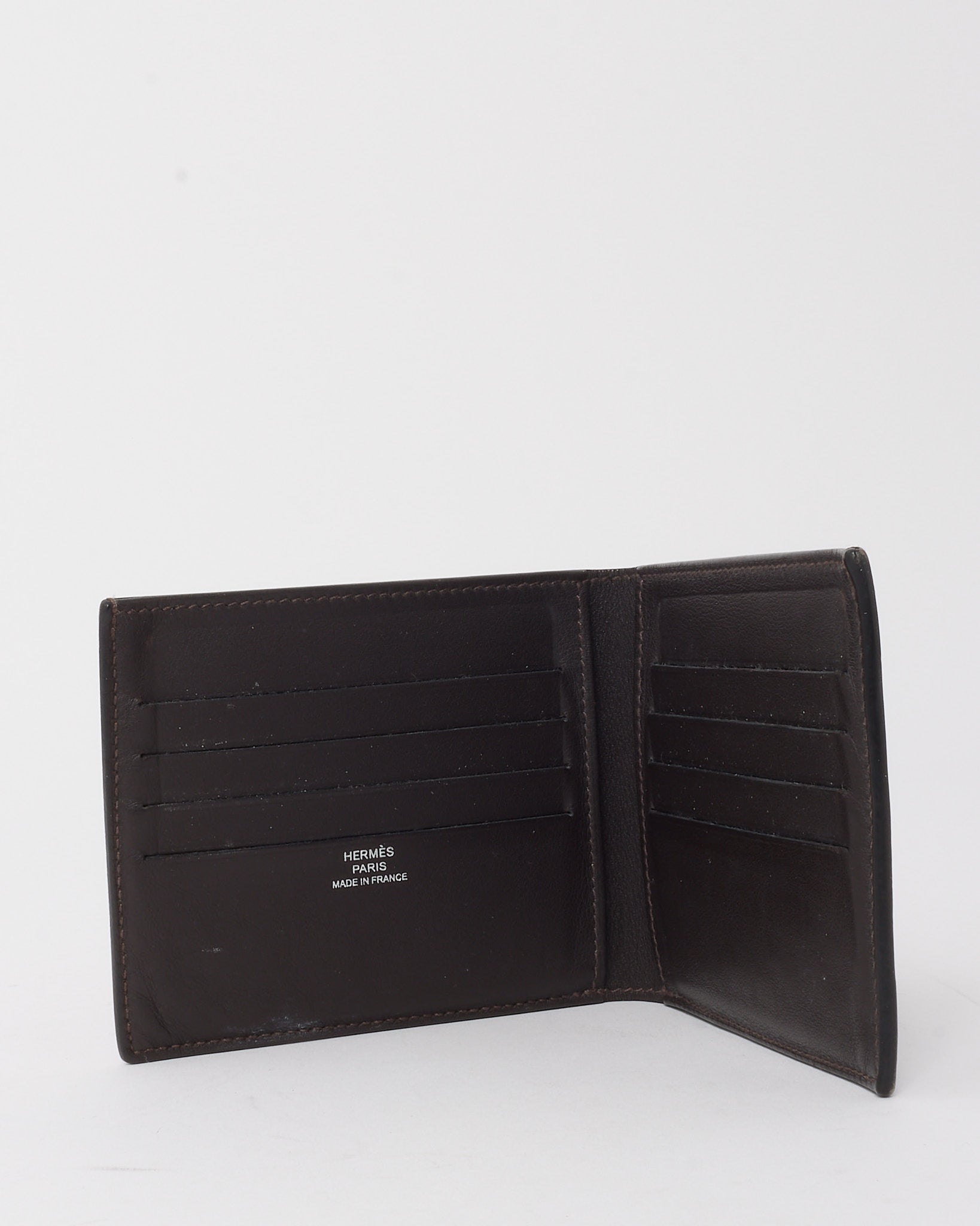 Designed for sleek utility with a refined touch, this pre-loved authentic Hermès Citizen Twill compact card holder is crafted in supple brown Swift leather. Its slim, bi-fold silhouette opens to reveal a silk twill-lined interior with multiple card slots and a central pocket for folded bills or receipts. The understated design reflects Hermès’ dedication to quiet luxury, making it a perfect everyday companion that slips easily into pockets or compact bags. A subtle nod to the maison’s craftsmanship, this wallet balances minimalist elegance with practical sophistication.