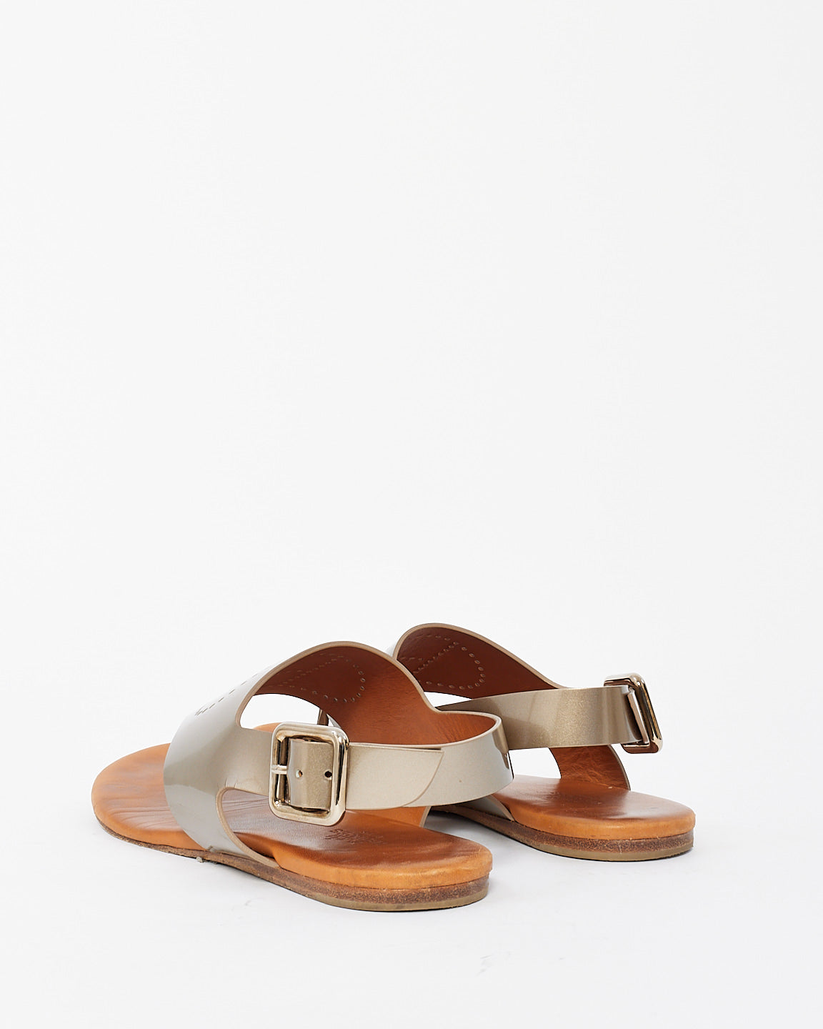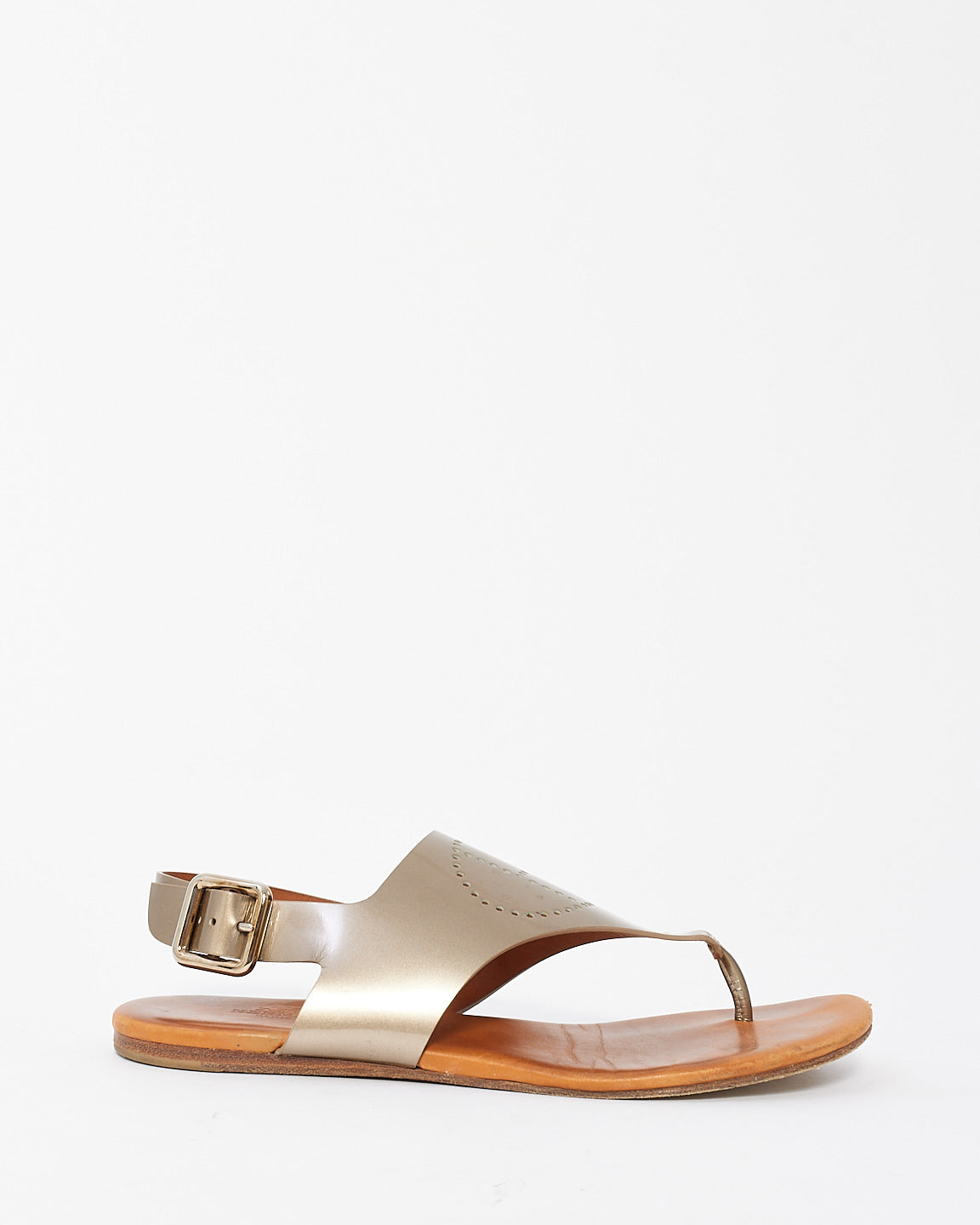 Metallic Brown Leather Kola Thong Flat Slingback Sandals - 37.5