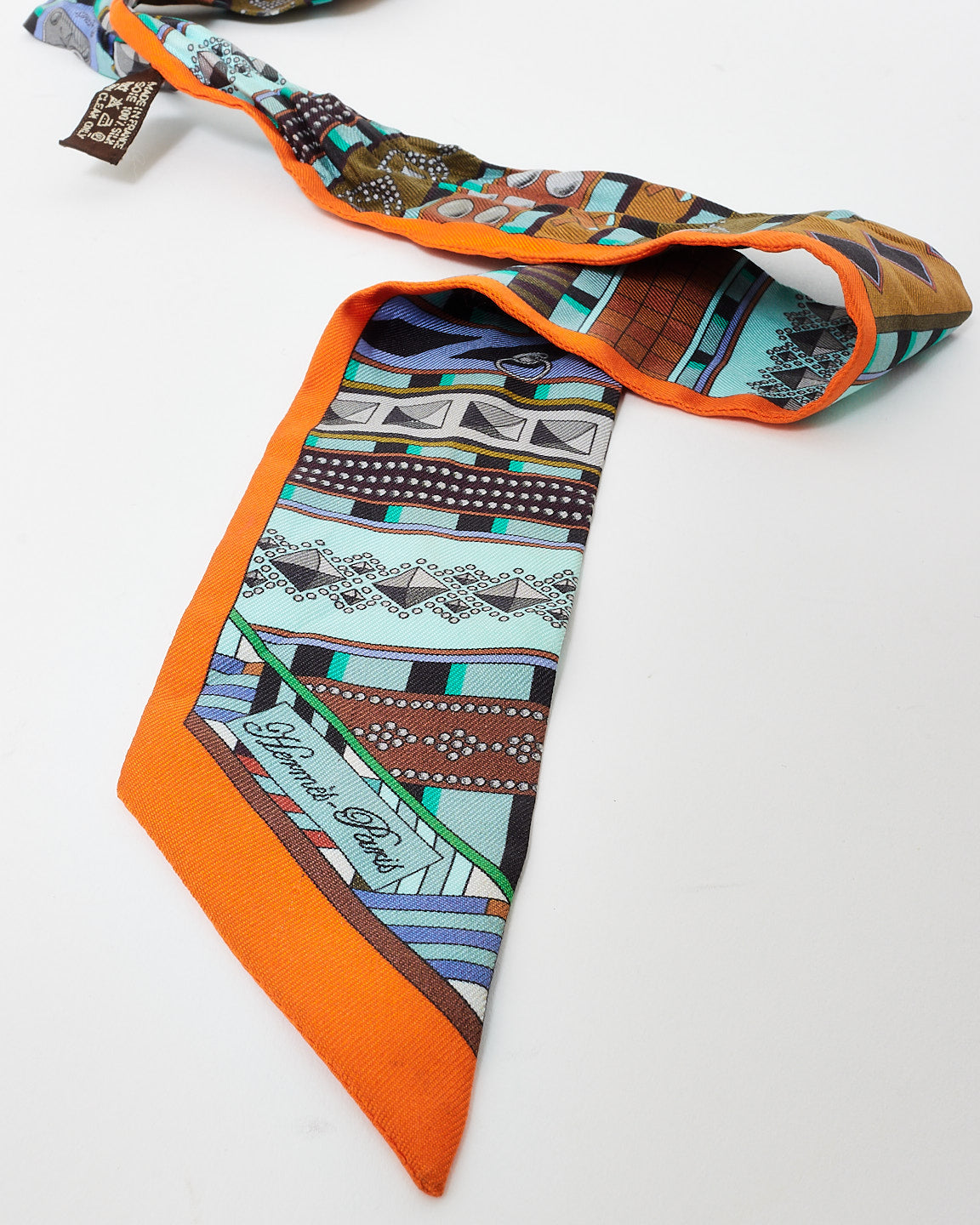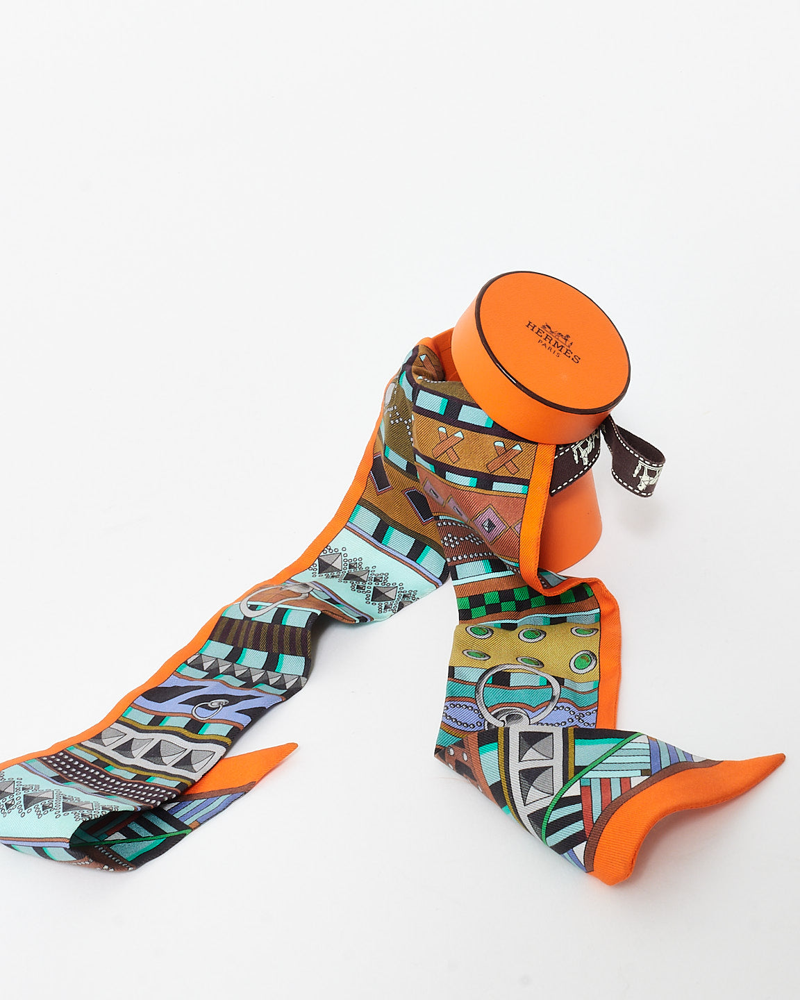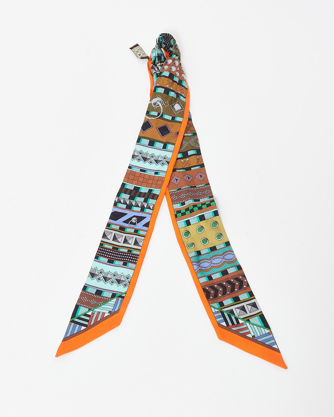 Explore Hermès's exquisite collection of accessories, featuring this certified pre-owned Orange Brown & Blue Multi Silk Twilly. Embodying timeless elegance and modern sustainability, each piece, including favorites like this, is authenticated by Retyche. Discover sustainable luxury — shop our current treasures or find inspiration for your next coveted find.