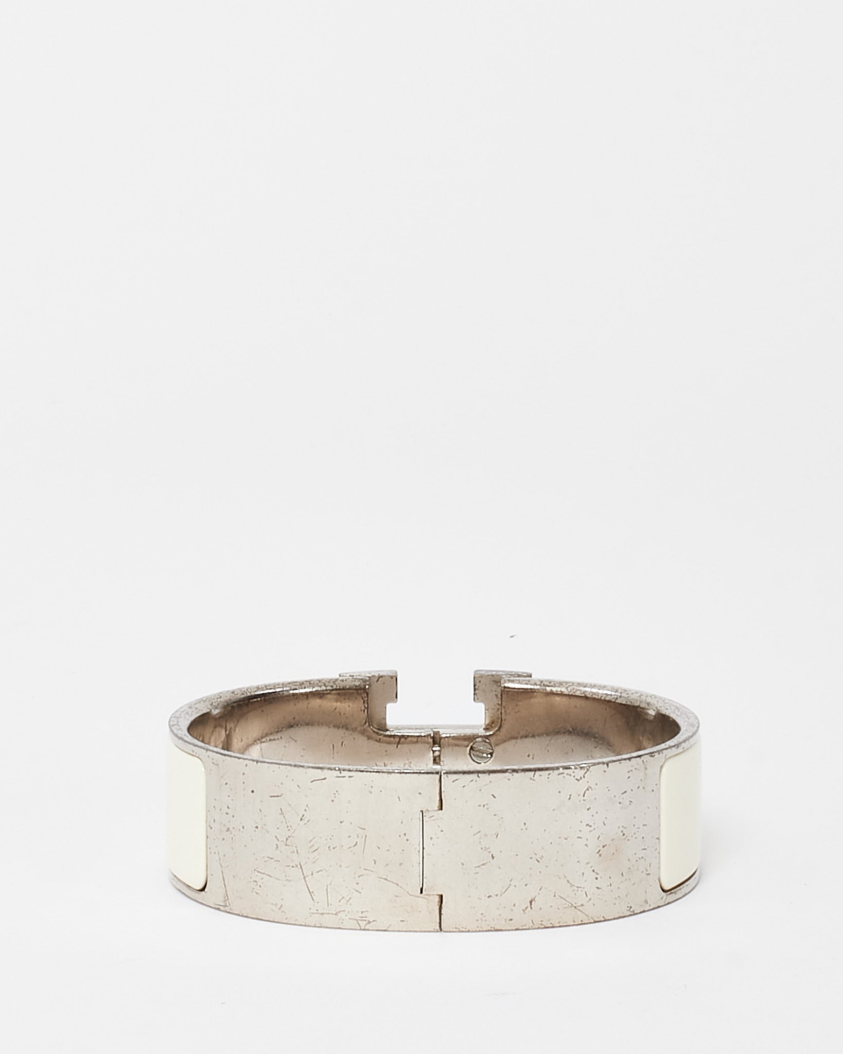 Silver White Enamel Wide Clic Clac H Bracelet - GM