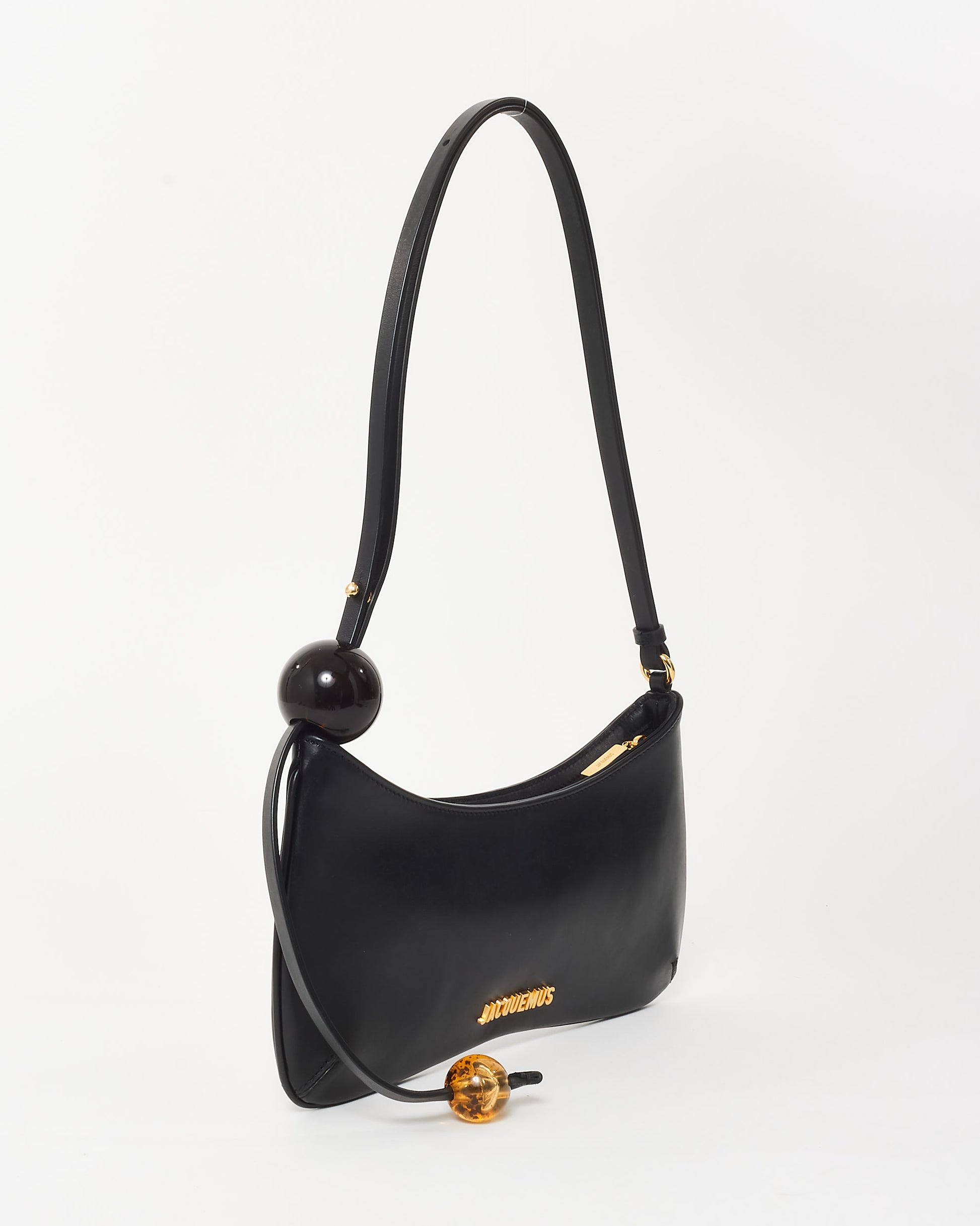 Elevate your accessory game with the authentic pre-loved Jacquemus Black Leather “Le Bisou” Perle Beaded Shoulder Bag, a perfect blend of contemporary chic and playful elegance. Crafted from smooth black leather, this sleek shoulder bag features a slim, minimalist silhouette that embodies Jacquemus’ signature modern aesthetic.
